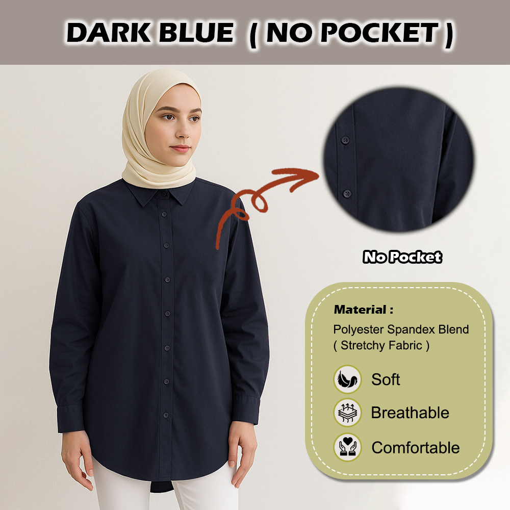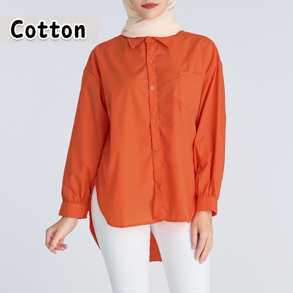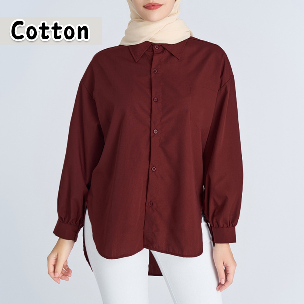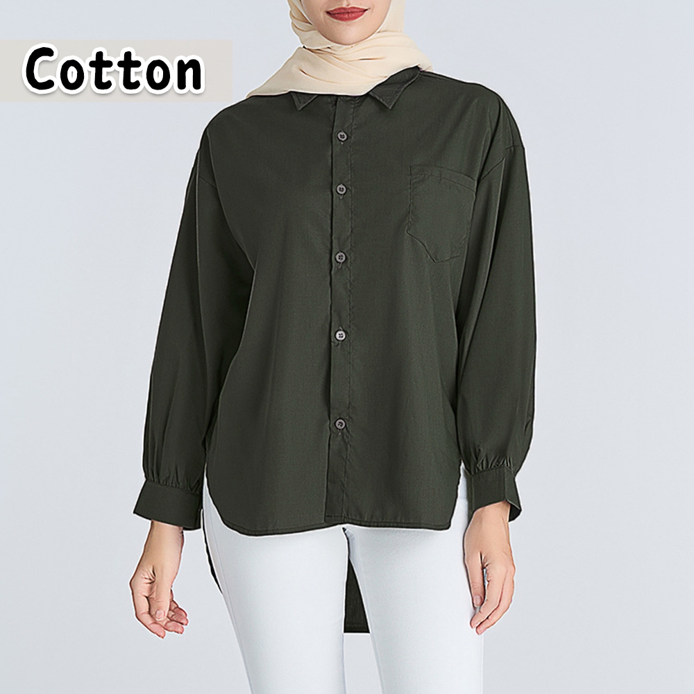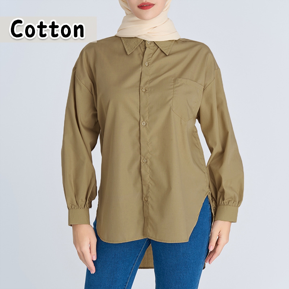 [Lamoda]BALQIS Lapel Pocket Shirt Versatile Loose Casual Long Sleeve Top kemeja Perempuan Baju Wanita Lengan Panjang