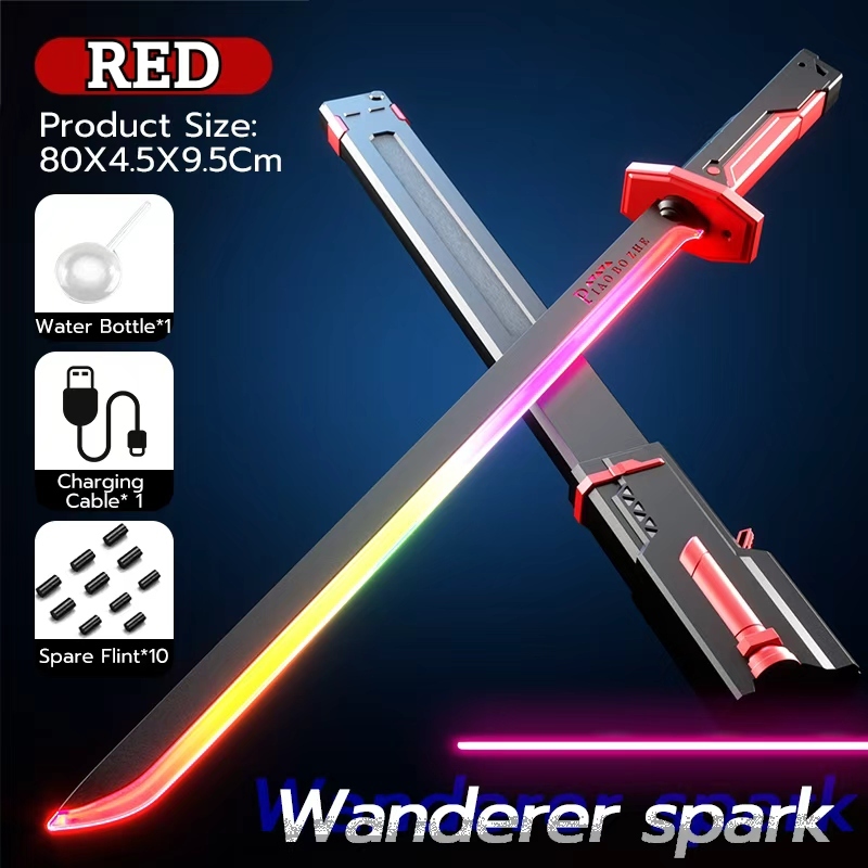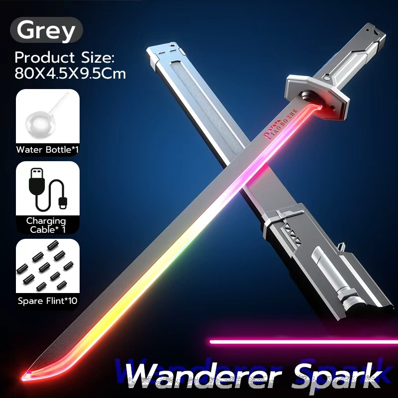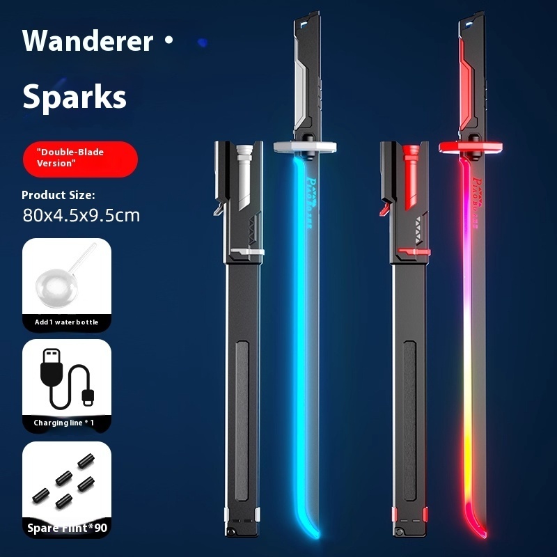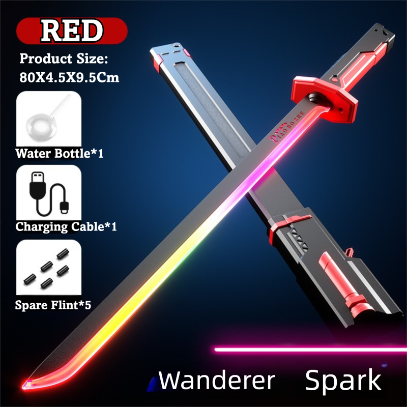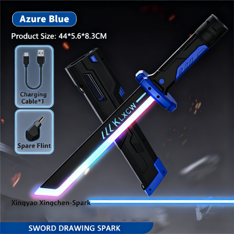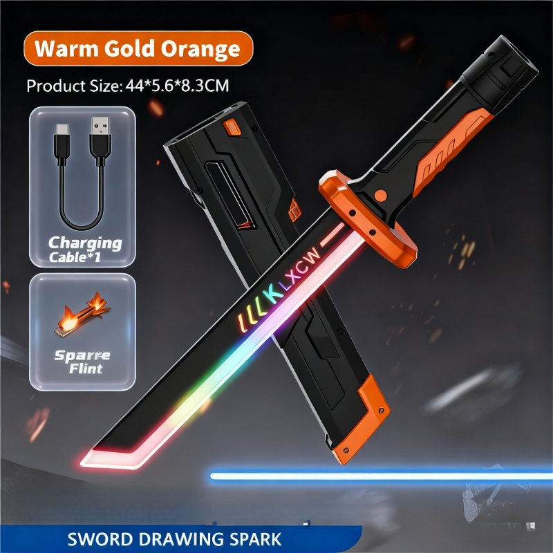 Colorful Streamer Glowing Sword Toy LED Light Sword with Spark & Smoke Effect for Kids and Adults