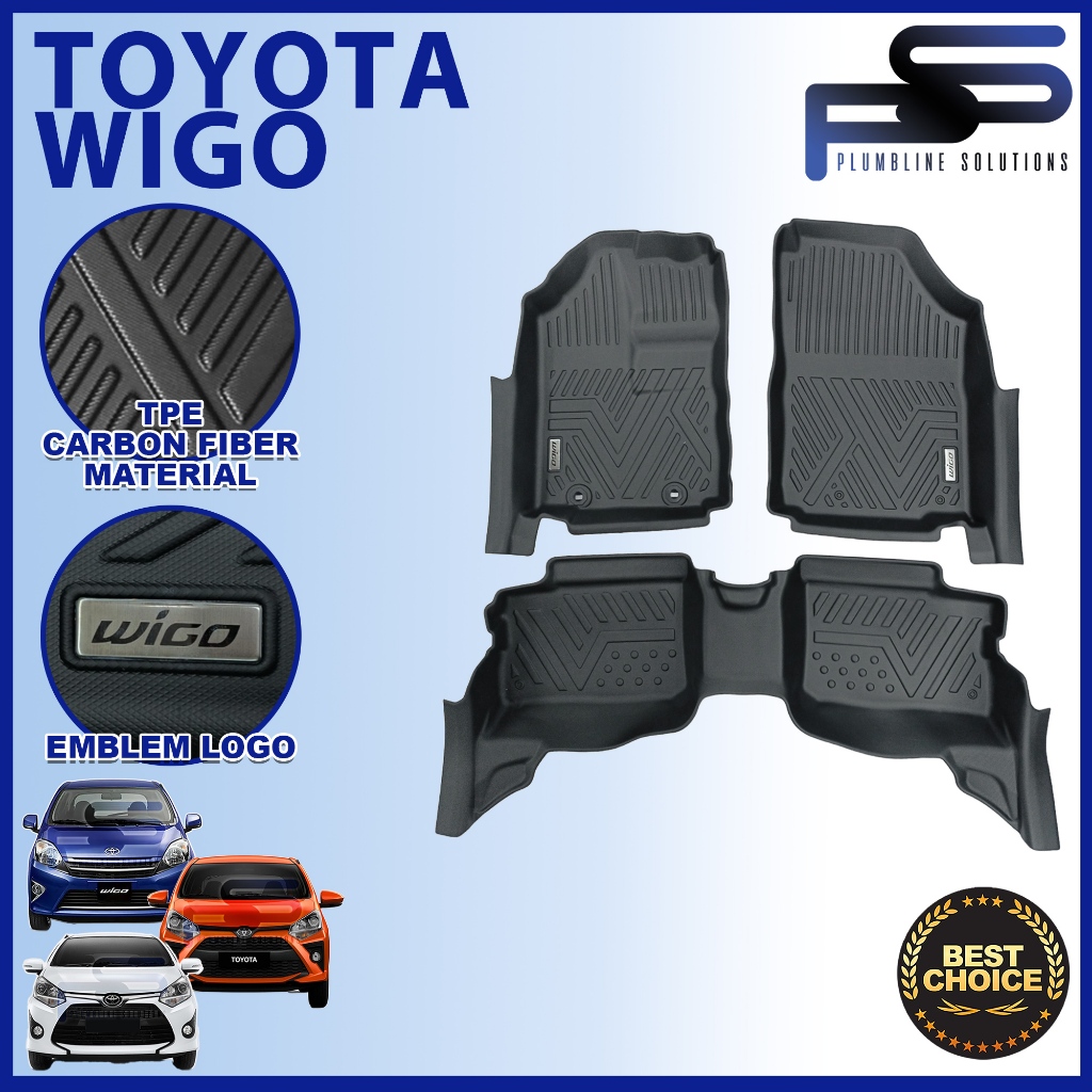 TPE / 5D ( BLACK & CARBON FIBER ) Deep Dish Matting for Toyota Wigo 2013 - 2023 Deep Dish Car Mattin