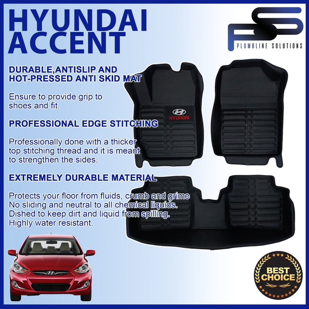 5D Deep Dish Matting for Hyundai Accent 2012 - Onwards OEM Design Car Floor Liners 2 ROWS 3 PCS