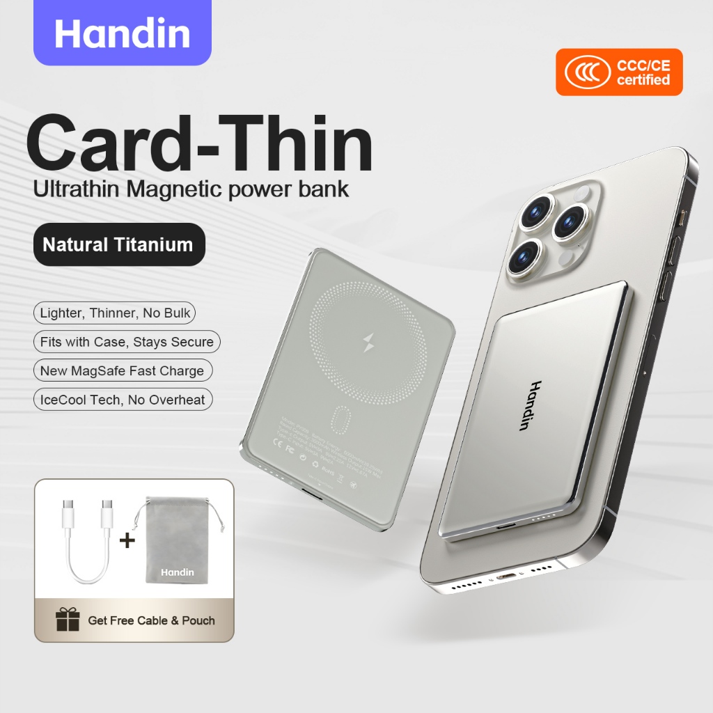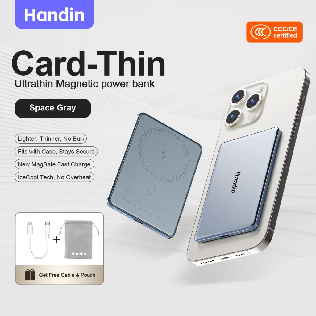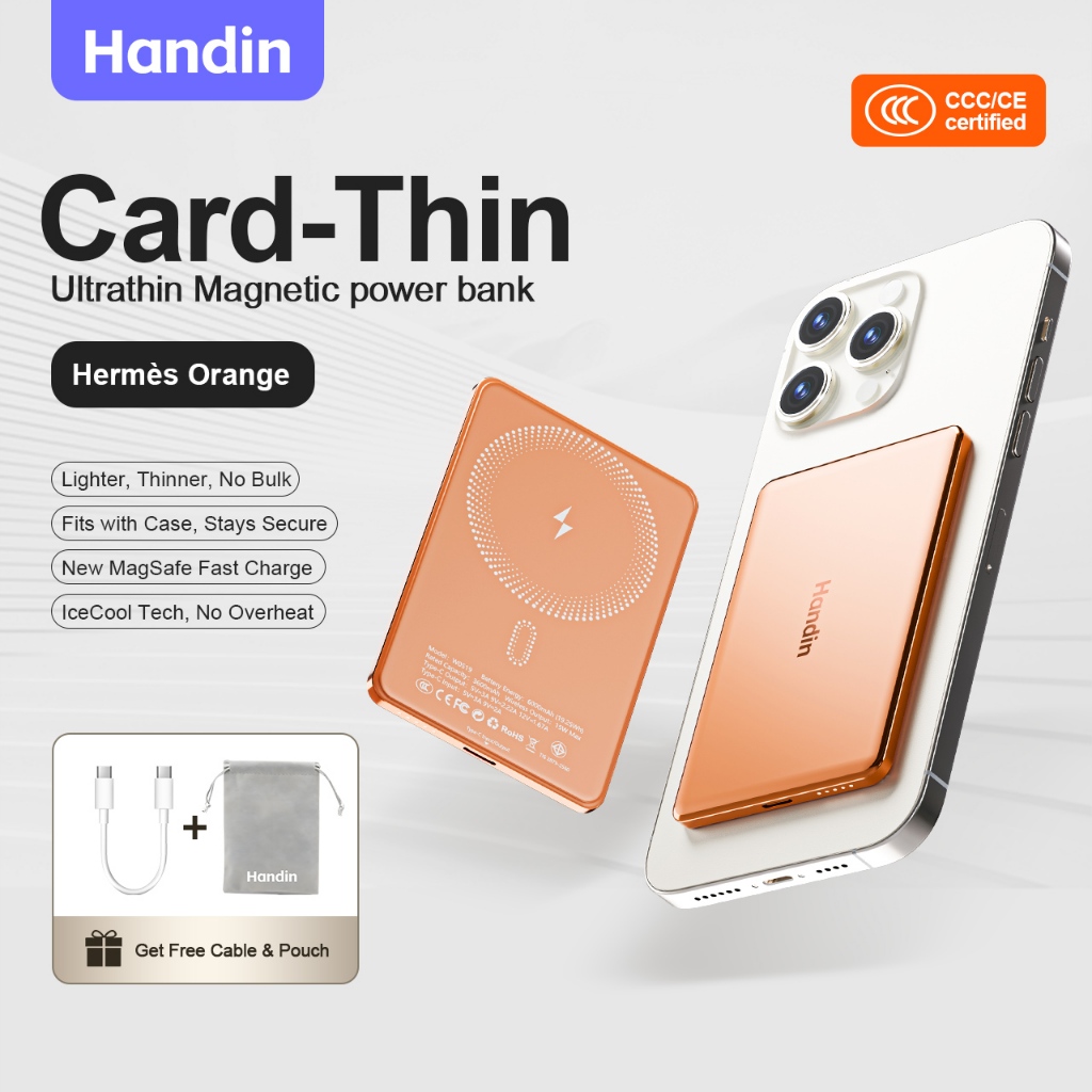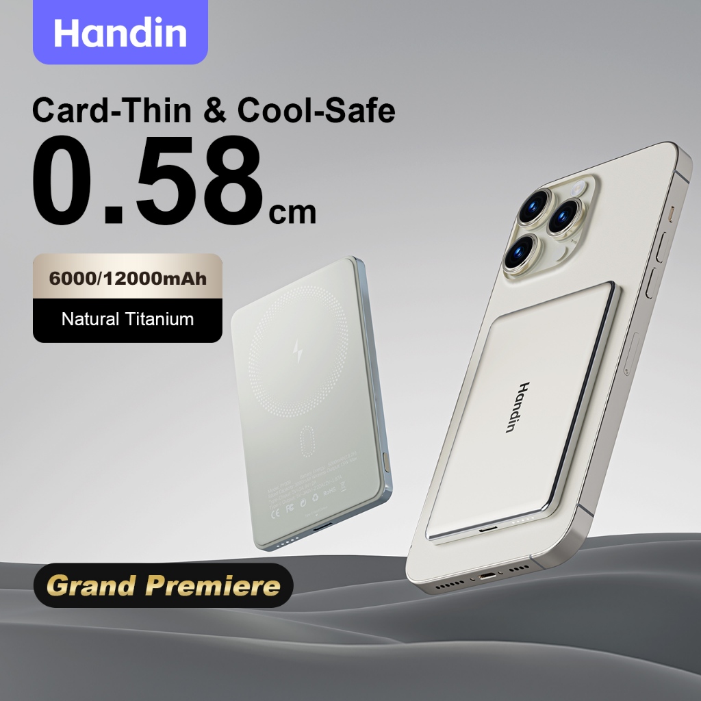 Handin 12000mAh Mini Ultrathin Magnetic Powerbank 22.5W Fast Charging Portable Wireless Typec For iP