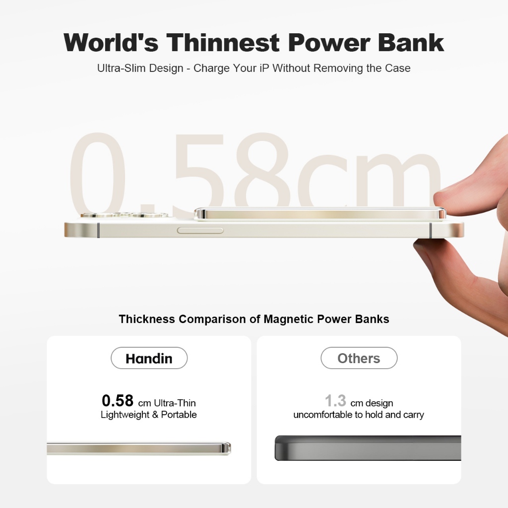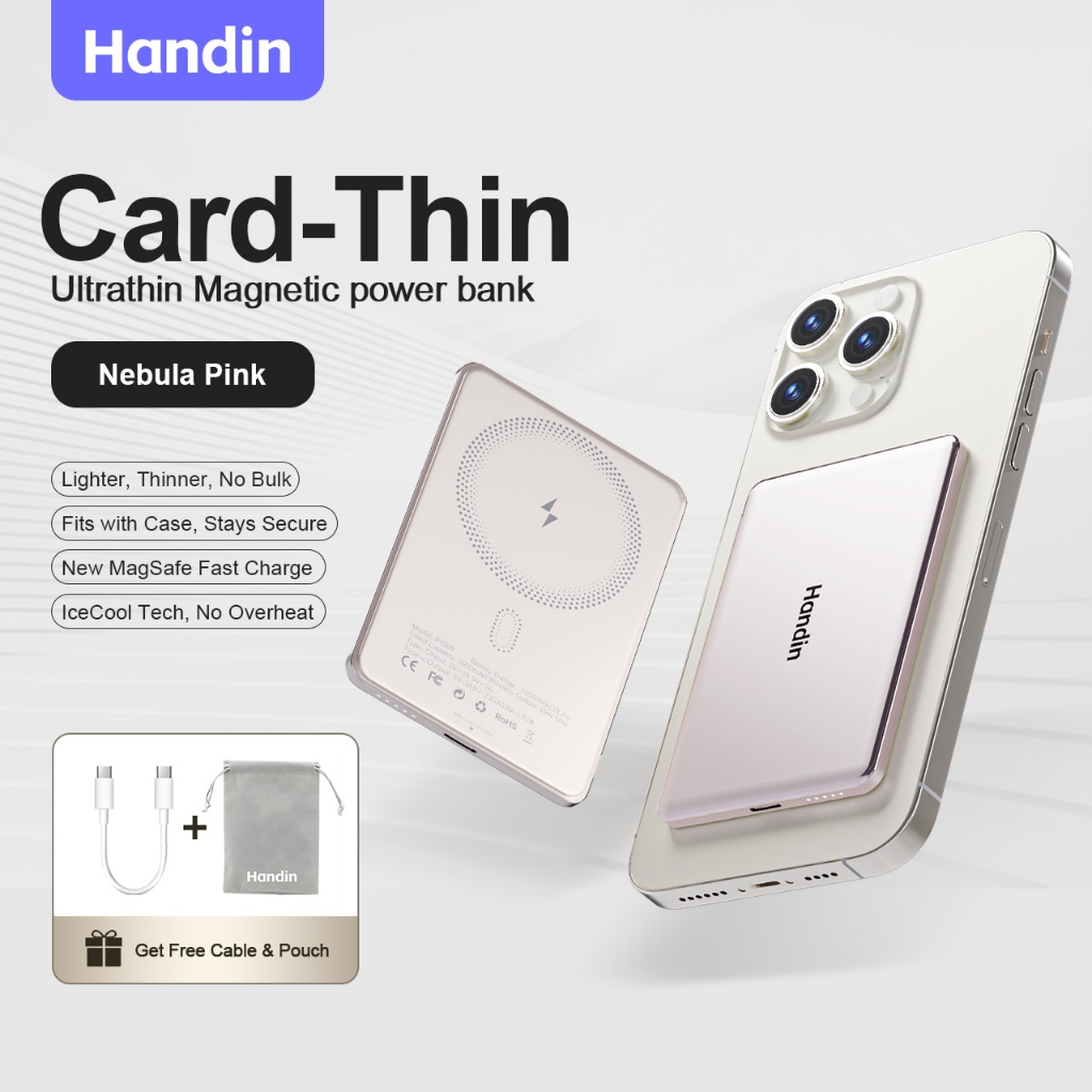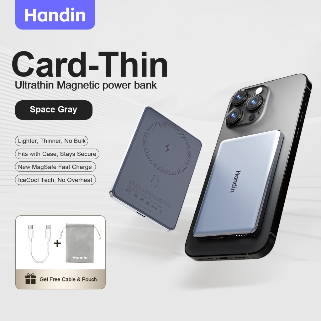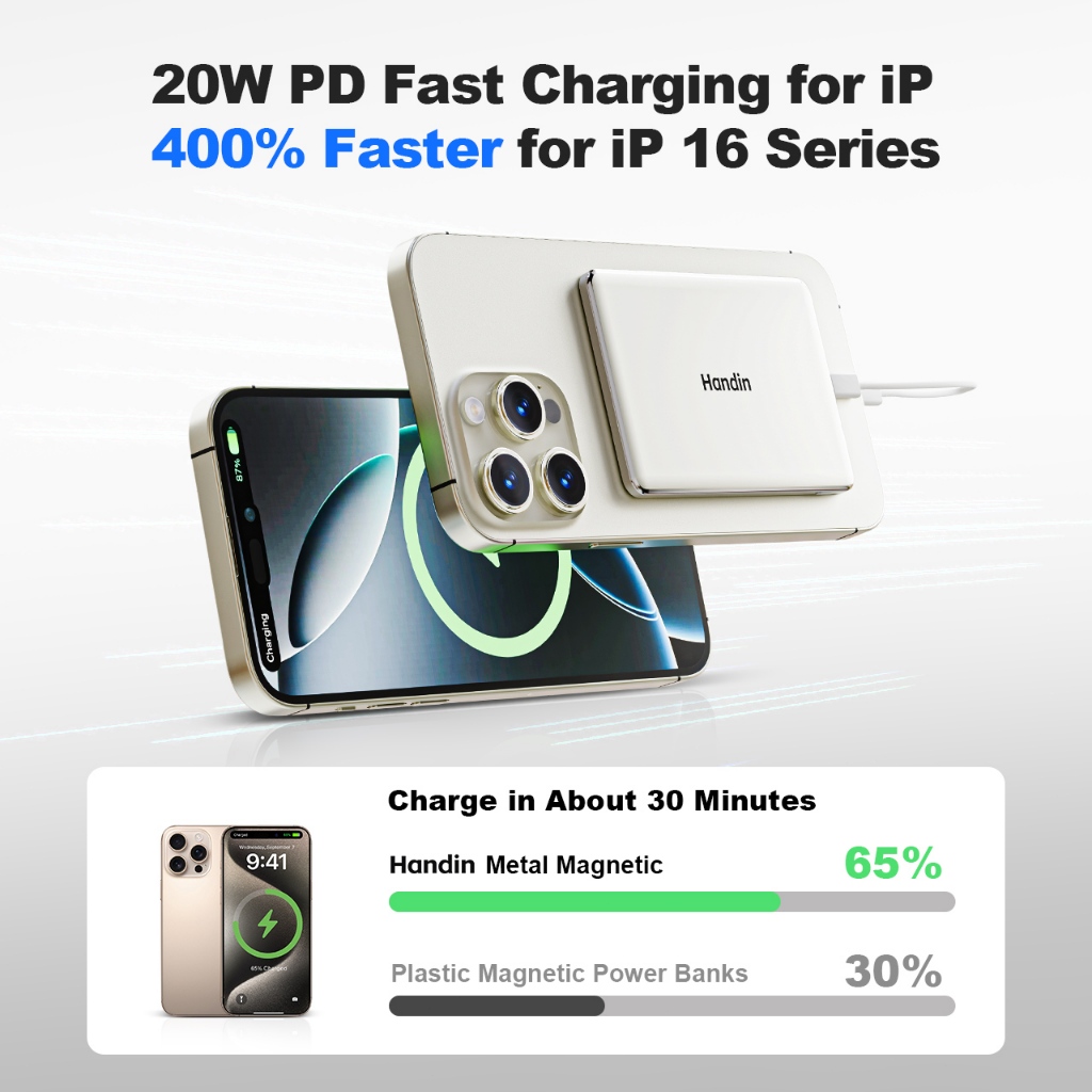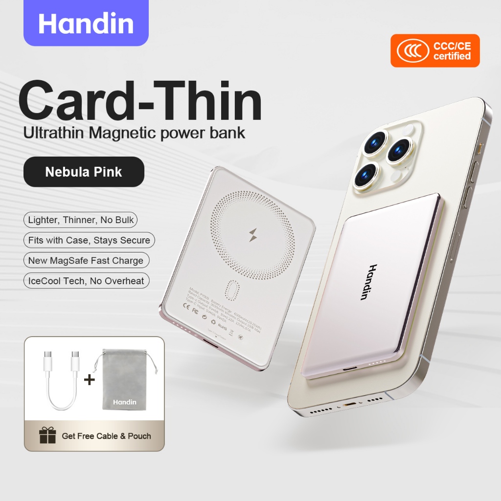 Handin 12000mAh Mini Ultrathin Magnetic Powerbank 22.5W Fast Charging Portable Wireless Typec For iP