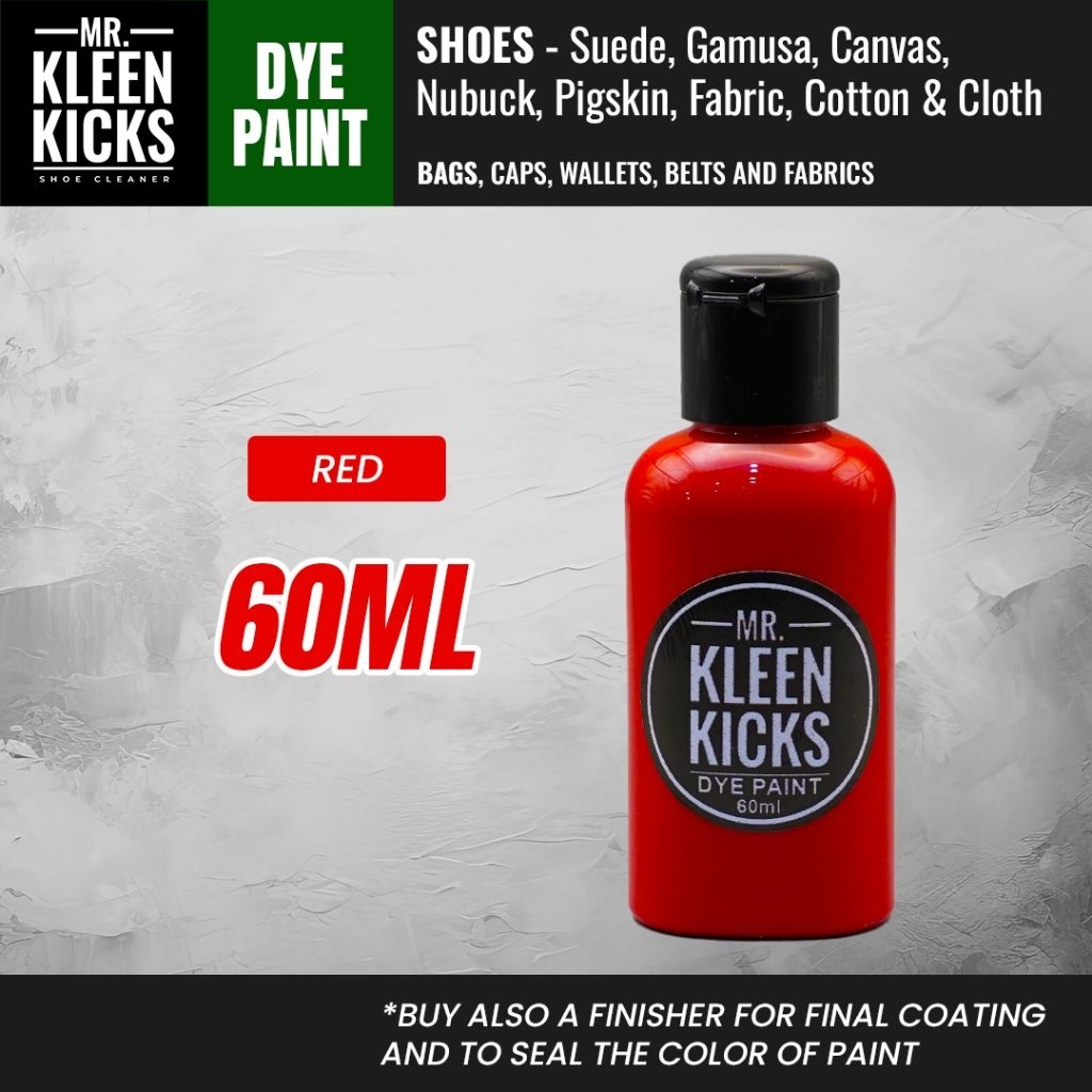 Dye Paint 60ml for Shoes, Bags, Caps, Wallets, and Cloth/SUEDE,GAMUSA,CANVAS,NUBUCK,PIGSKIN
