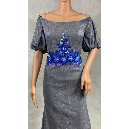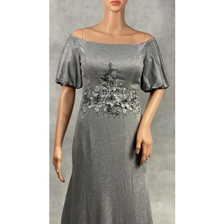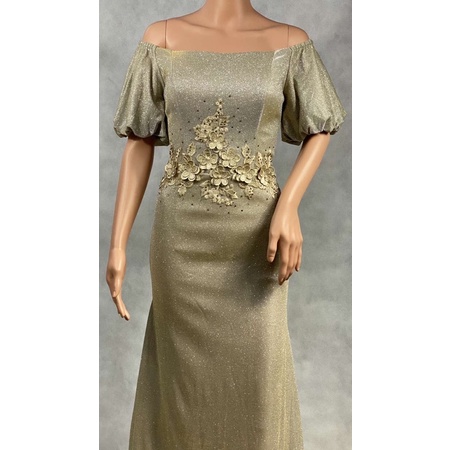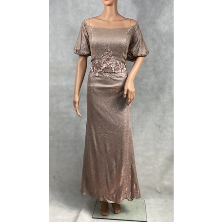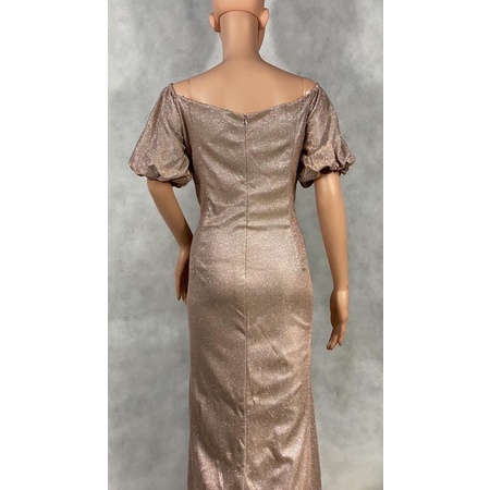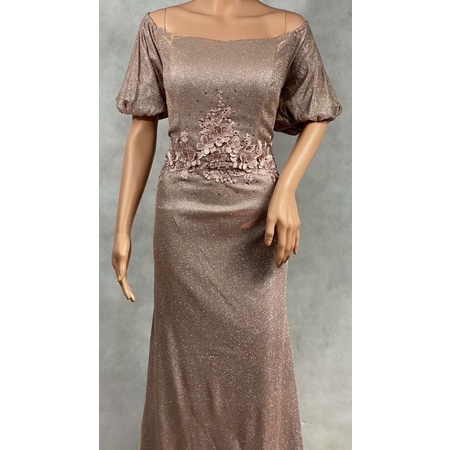 Blush Pink Off the Shoulder Puff Sleeve Semi Serpentine Ninang Dress