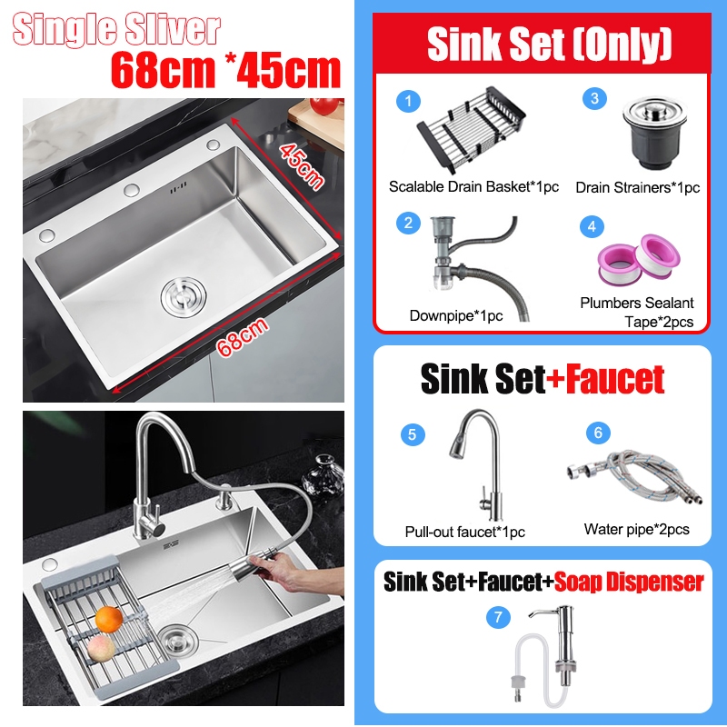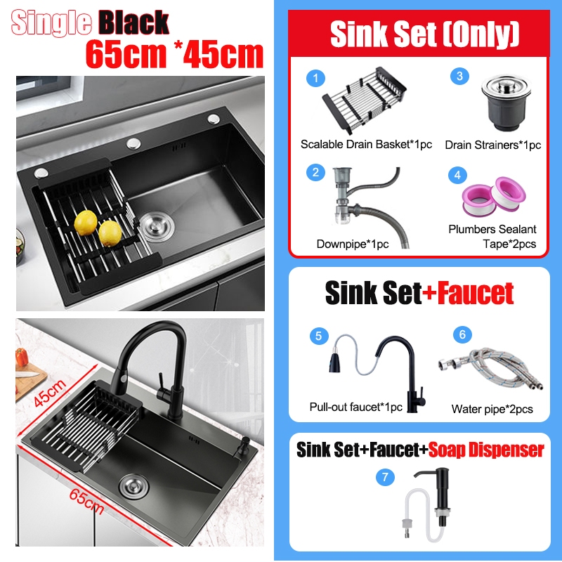 【Upgraded Packaging】304 Stainless Steel Kitchen Sink Silver/Black Free Soap Dispenser