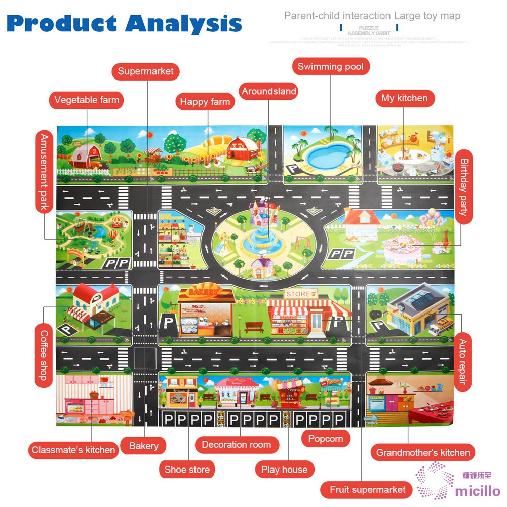 Children Play Mats House Traffic Road Signs Car Model Parking City Scene Map