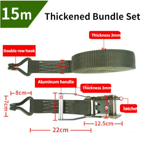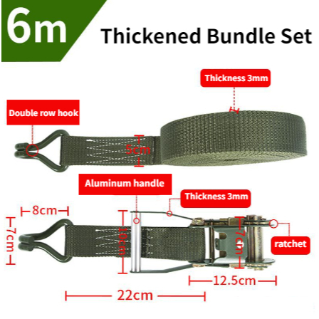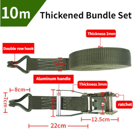 10M Ratchet Strap Tie Down Adjustable Heavy Duty Tie-Down Ratchet Cargo Truck Straps Wire Hook Ends