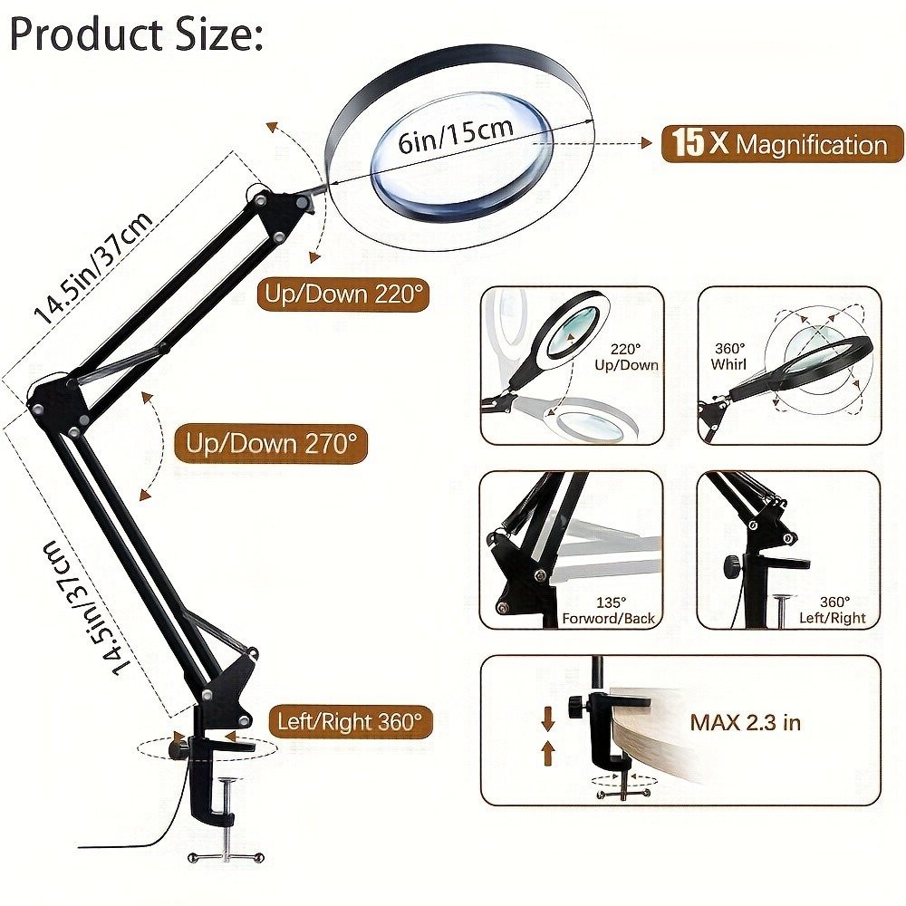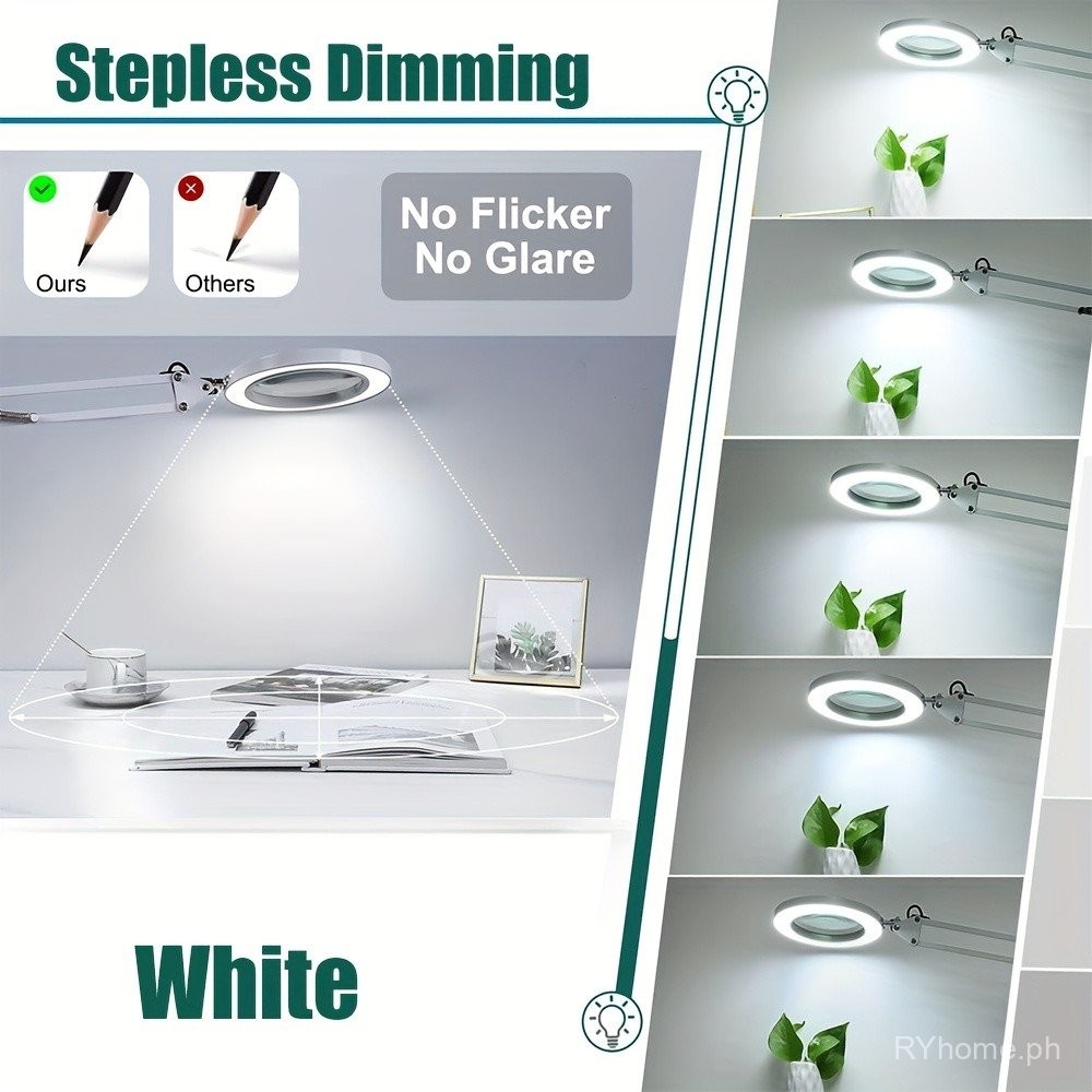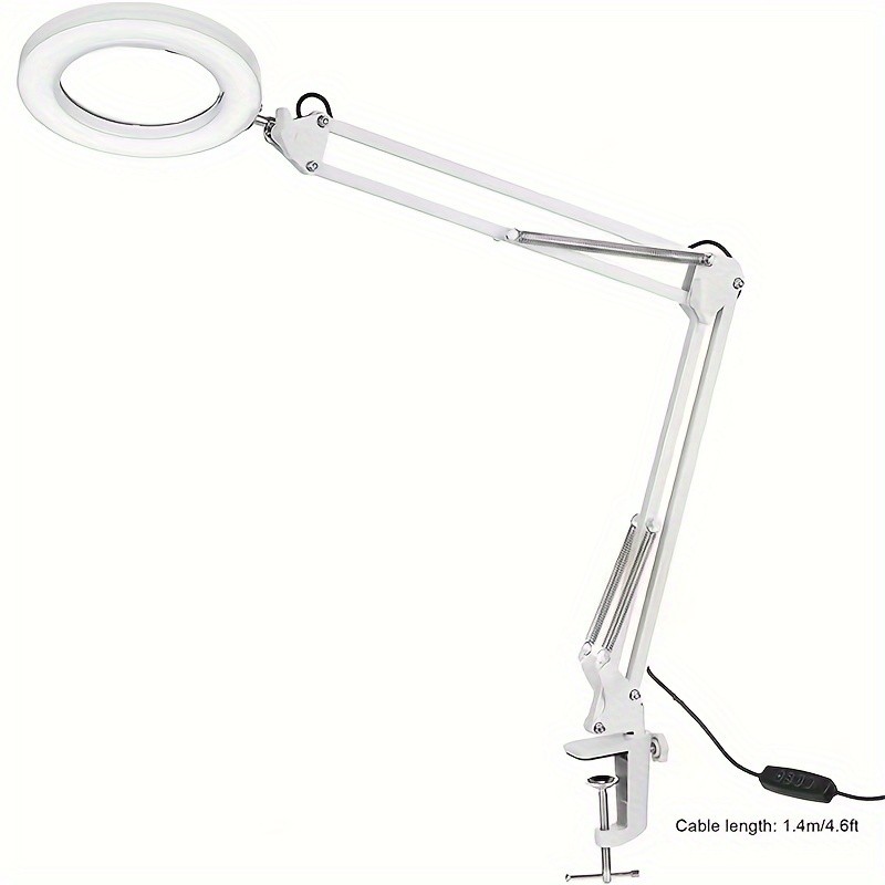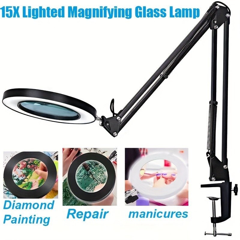 10X Magnifying Glass with Light and Stand, Real Glass Lens 3 Color Modes Stepless Dimmable Hands Free Adjuastble Arm LED Lighted Magnifier Desk Lamp & Clamp for Crafts Reading