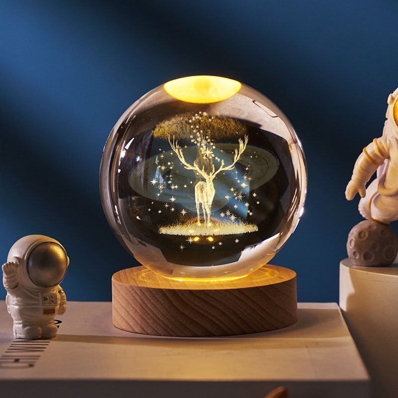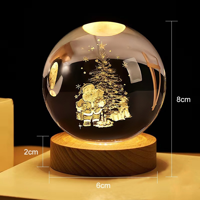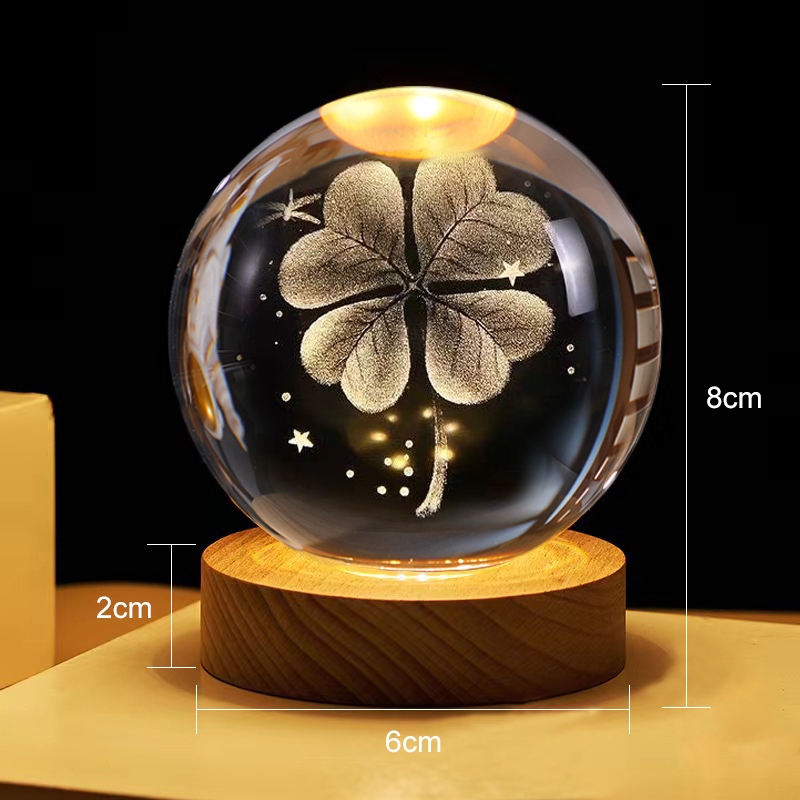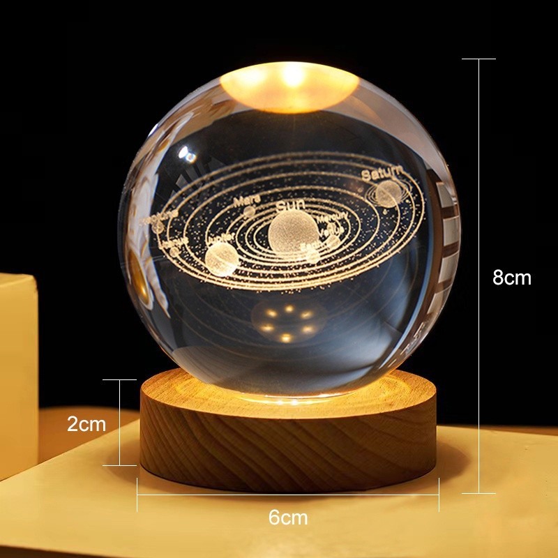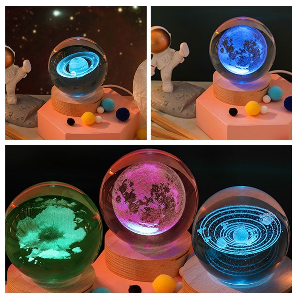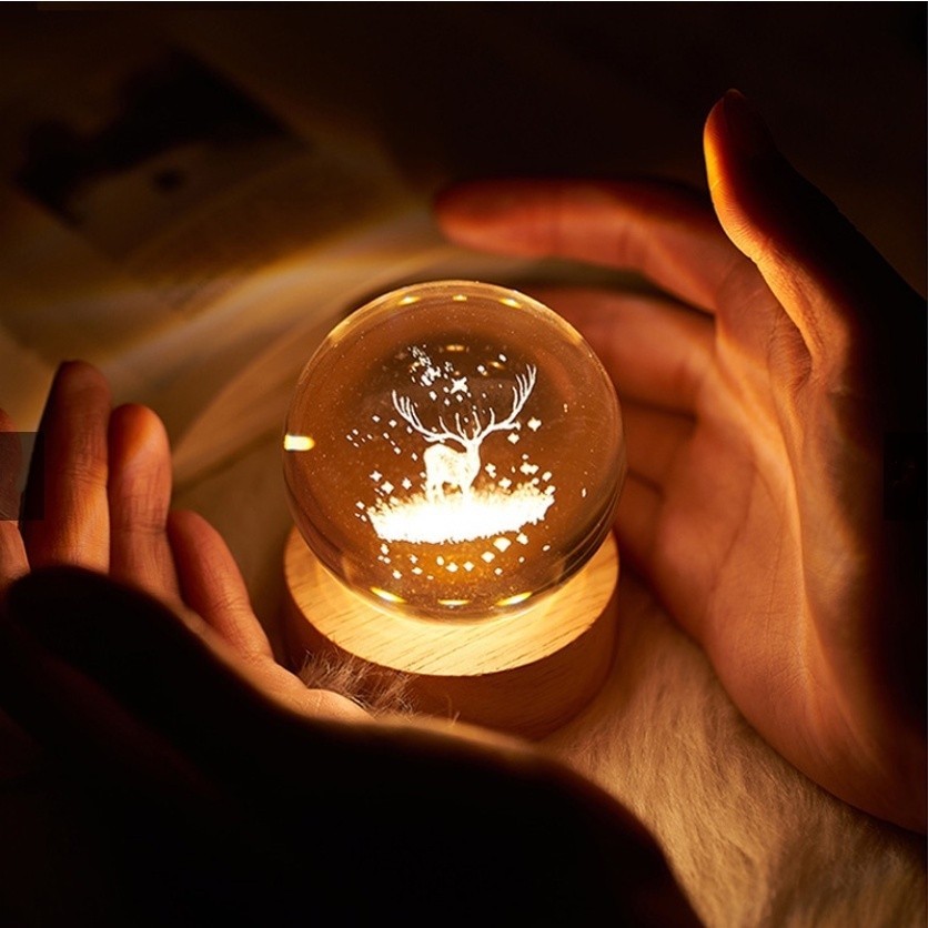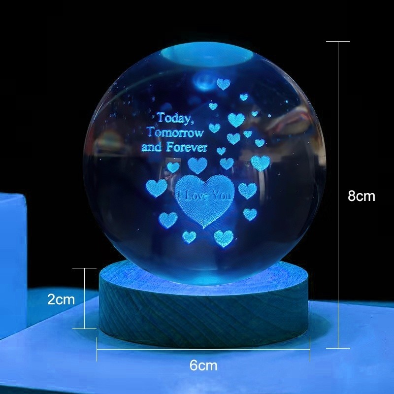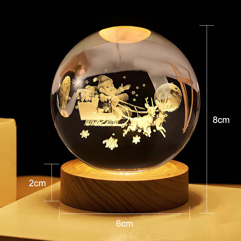 3D Crystal Ball Night Light Bedroom USB Table Lamp with Wooden Base for Birthday Gift or Home Decor