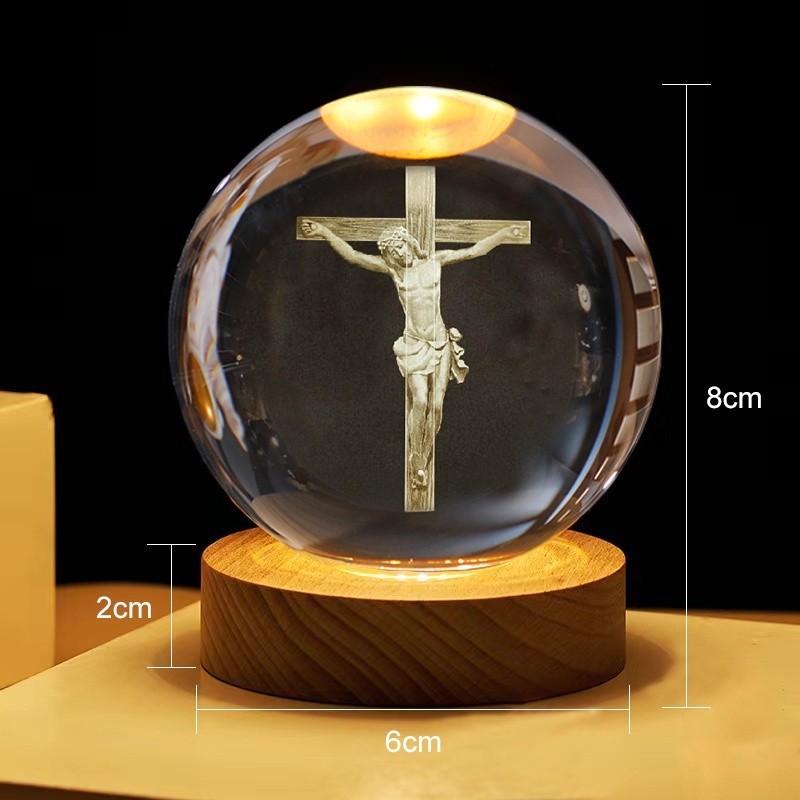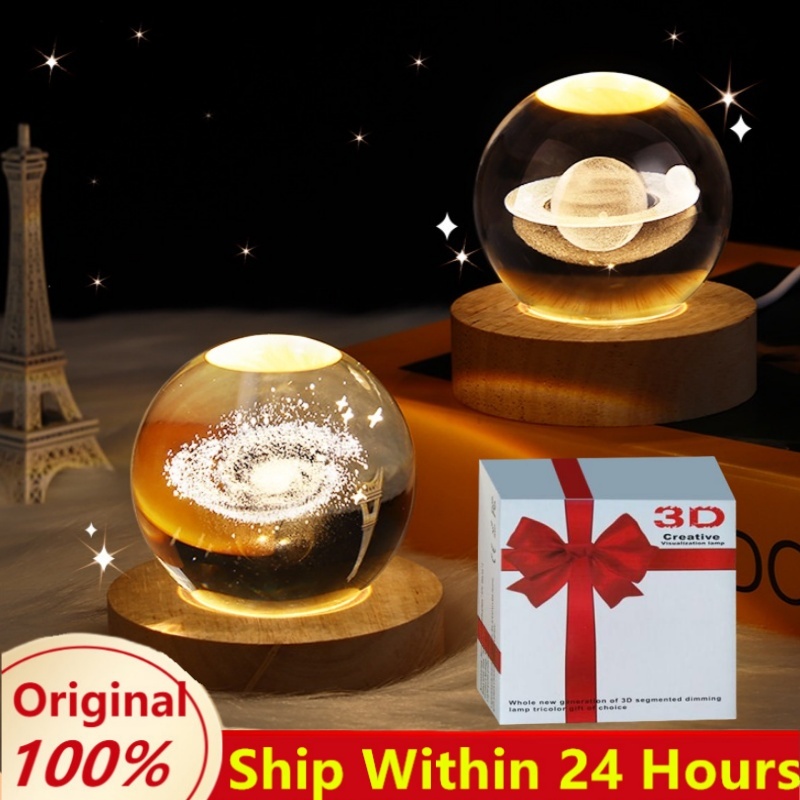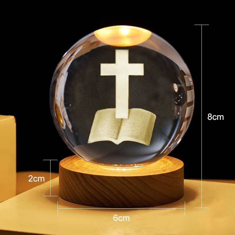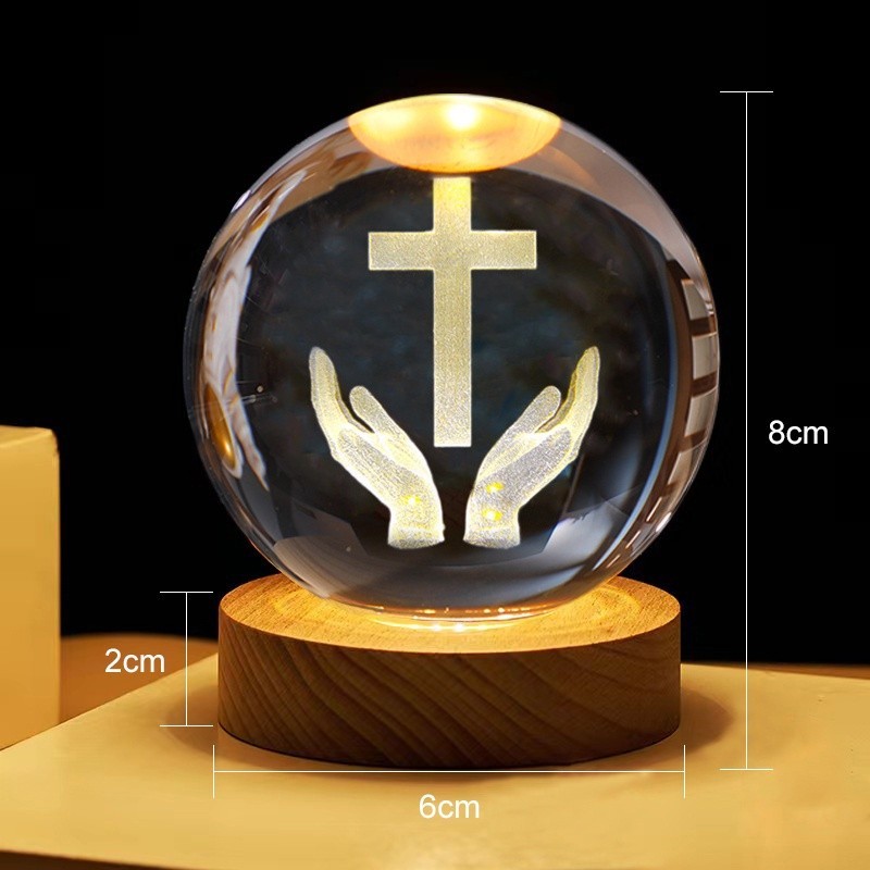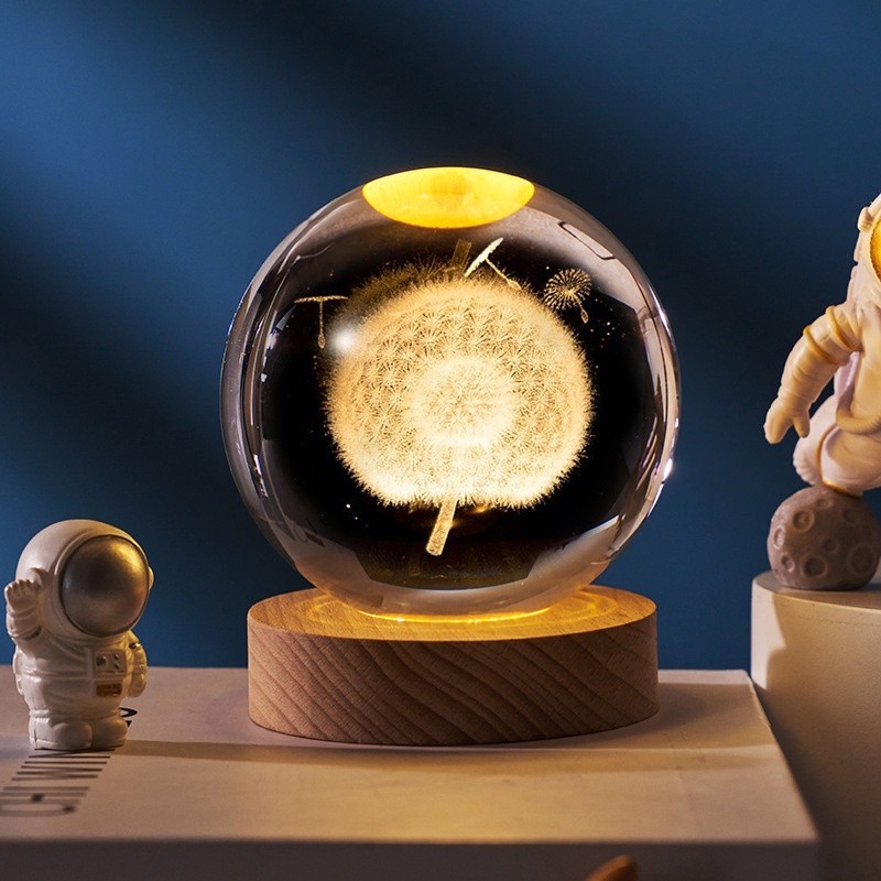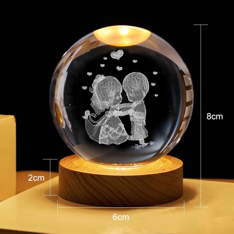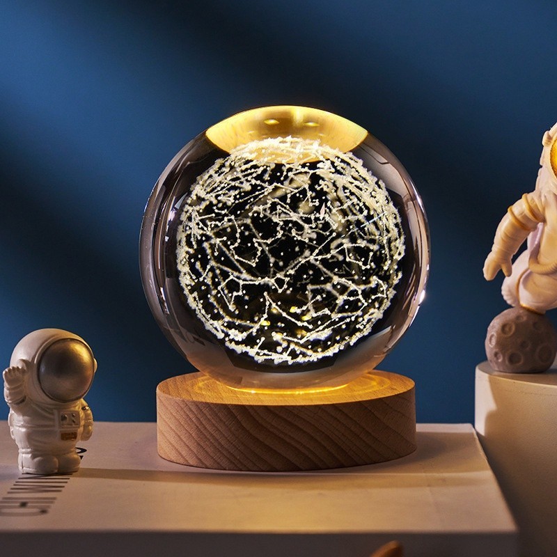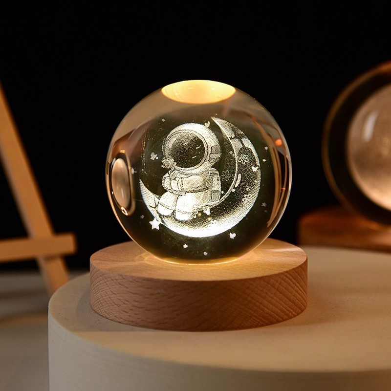 3D Crystal Ball Night Light Bedroom USB Table Lamp with Wooden Base for Birthday Gift or Home Decor