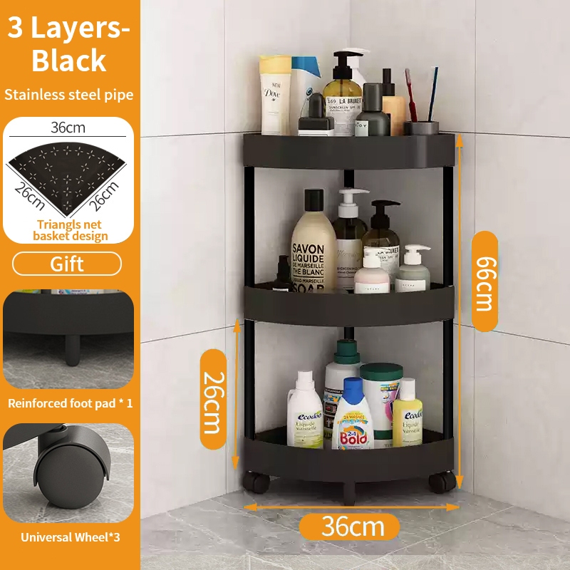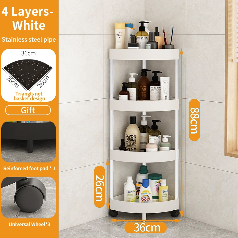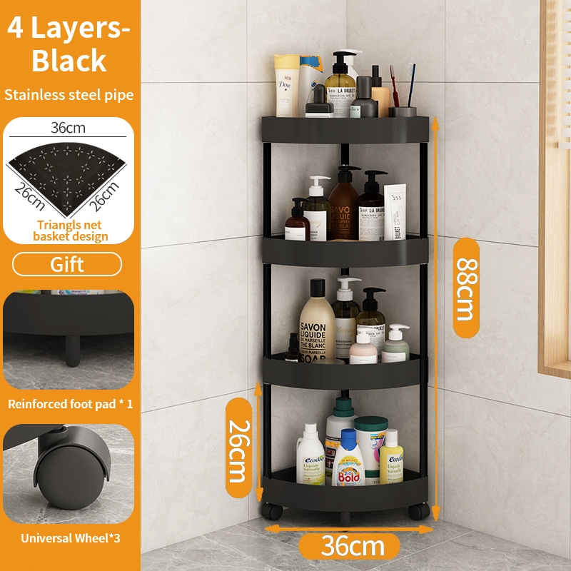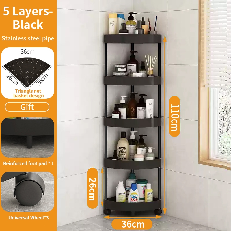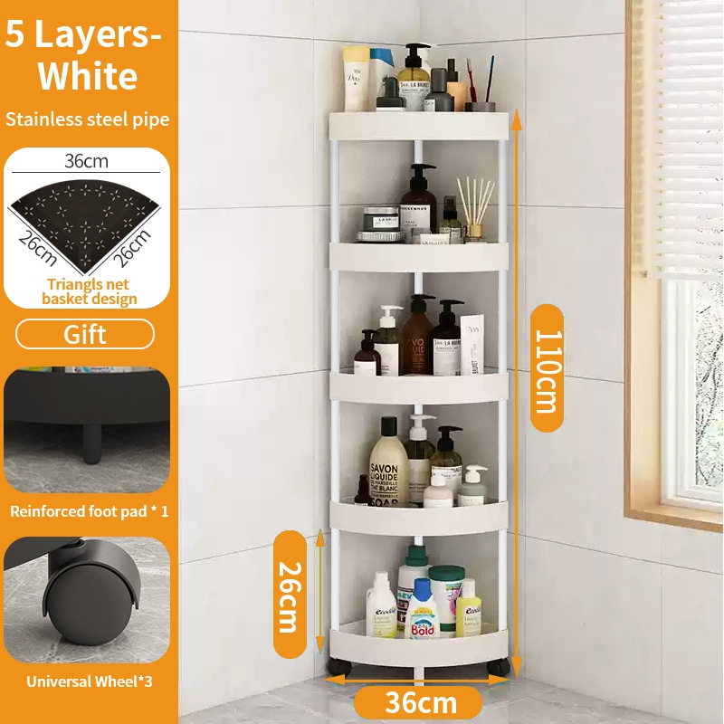5 Layer Movable Corner Bathroom Storage Rack Triangular Storage Rack Waterproof Bathroom Organizer