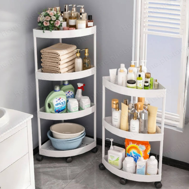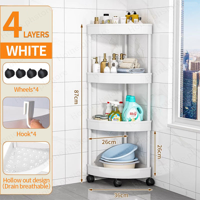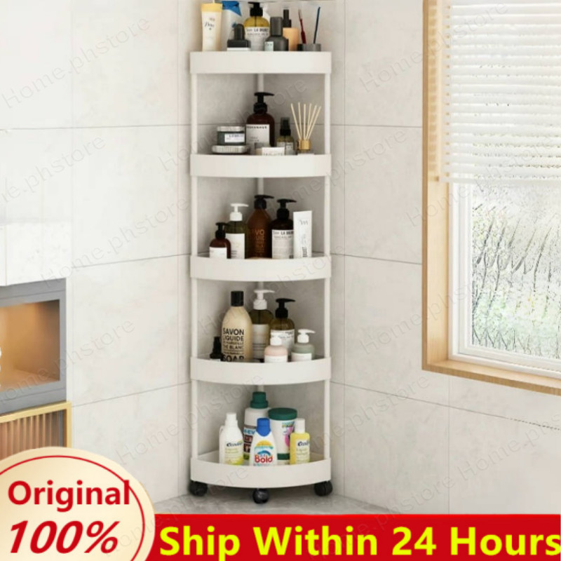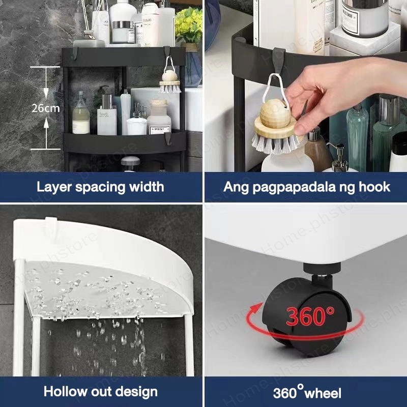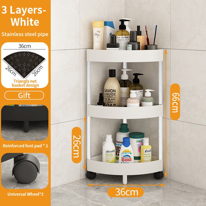 5 Layer Movable Corner Bathroom Storage Rack Triangular Storage Rack Waterproof Bathroom Organizer
