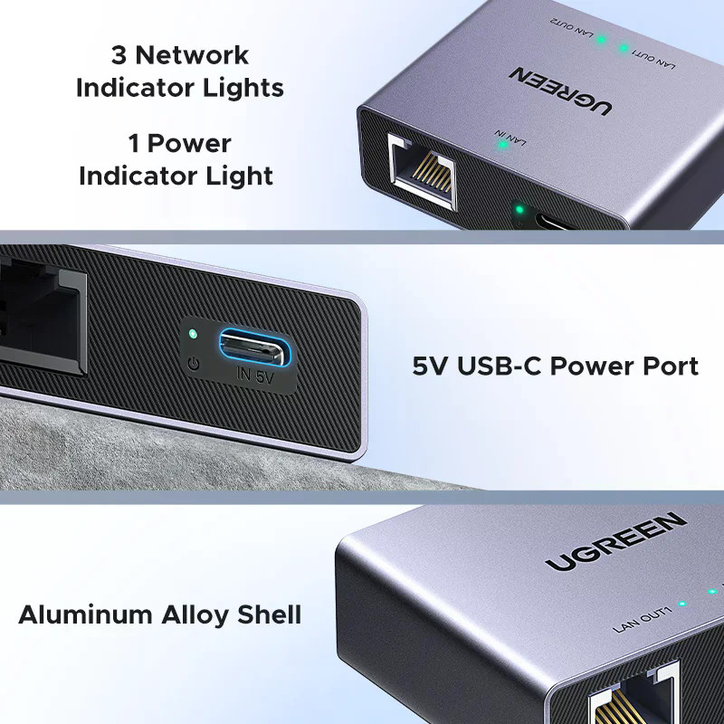 UGREEN 1000Mbps RJ45 Splitter 1 to 2 Ethernet Adapter Lan Connector rj45 Splitter Switch Coupler for PC Laptop TV Box Router