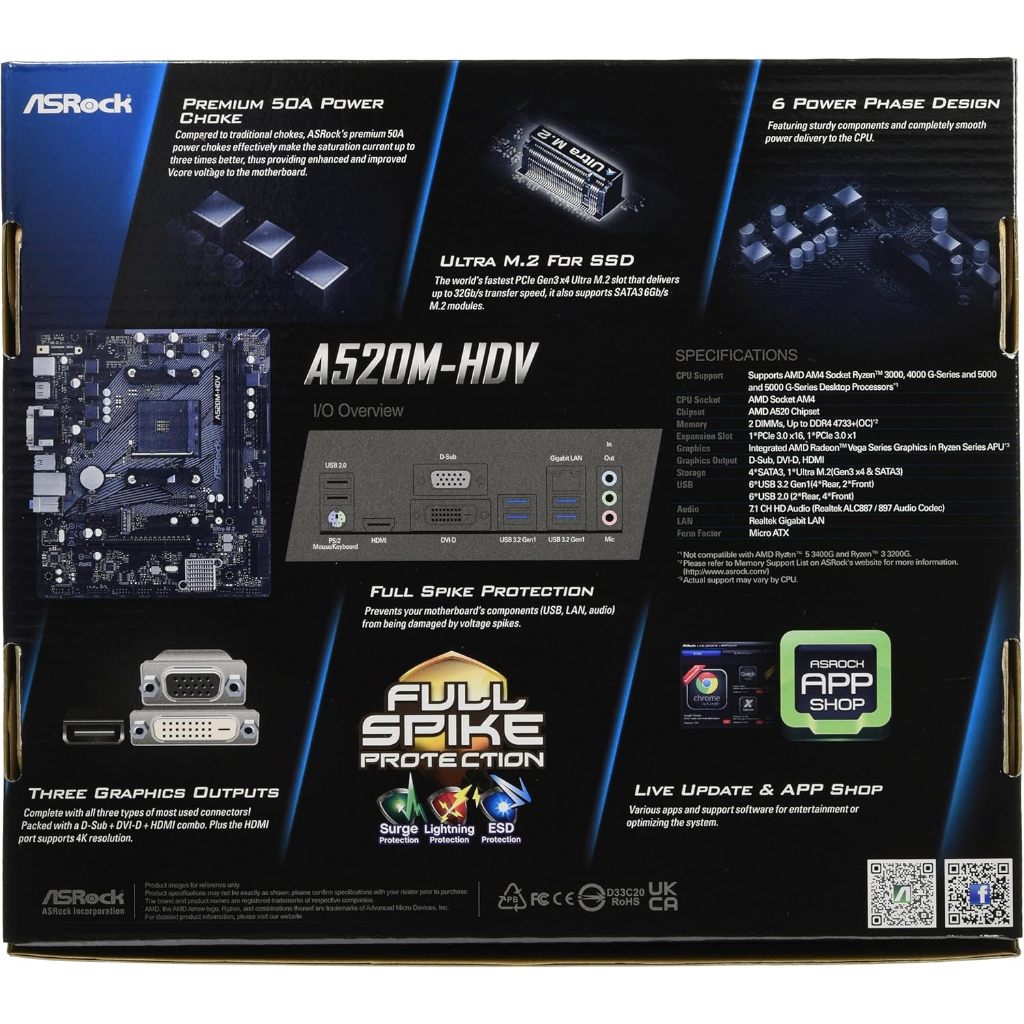 【Japan Quality】ASRock AMD Ryzen 3000/4000 Series (Socket AM4) Compatible Micro ATX Motherboard with A520 Chipset [Domestic Authorized Dealer Product] A520M-HDV