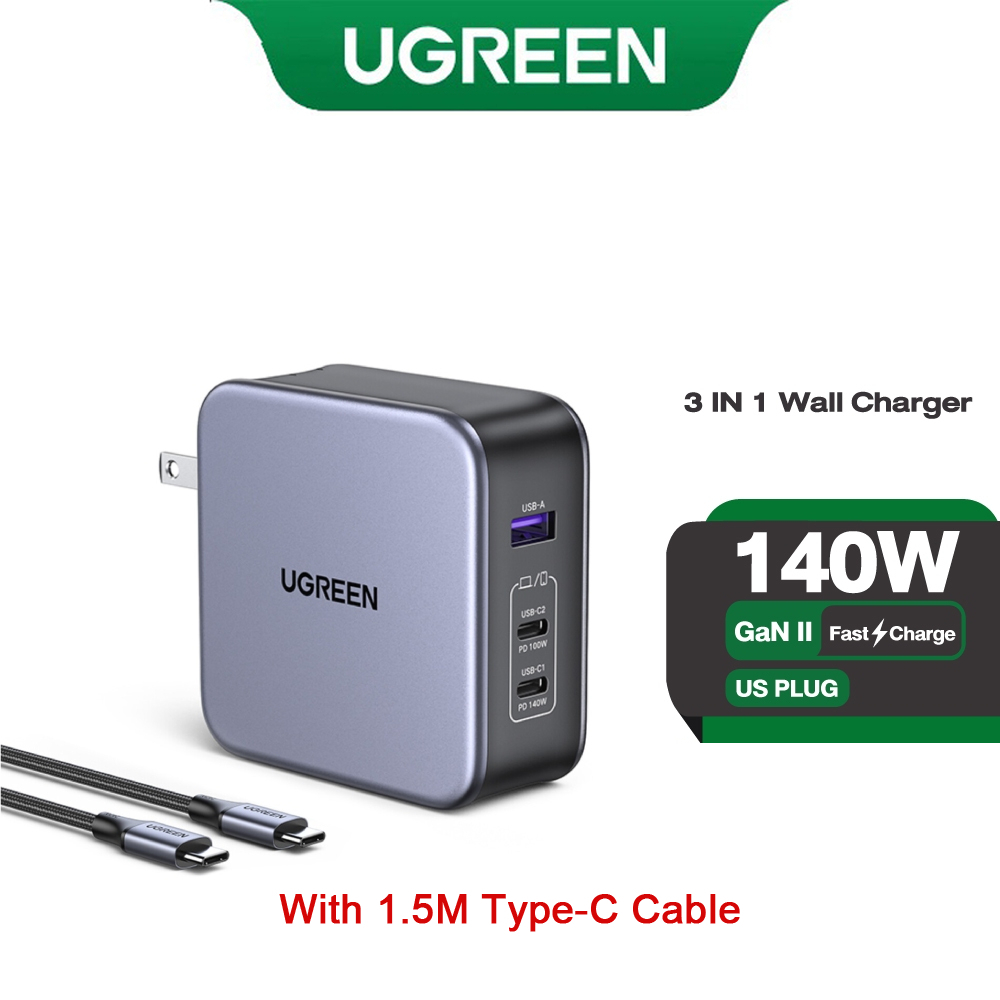 UGREEN 140W GaN Charger PD Type C USB 4 Ports Fast Charger for phones Laptops Tablets MacBooK pro MacBook Air Xiaomi pad 5/5pro 13/12/11/8 Mini Portable
