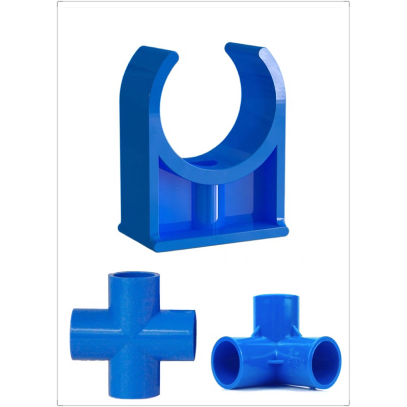 pvc blue cross tee and 3-way tee blue pvc U-clamp 1/2" 3/4" 1"