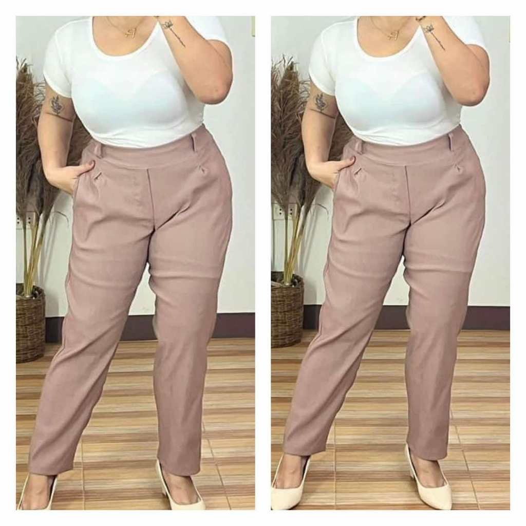 raileystore -HIGH-WAIST EXTRA PLUS SIZE BELTED PULL UP PANTS 38” - 46" WAIST | XL - 4XL BLACK PANTS.