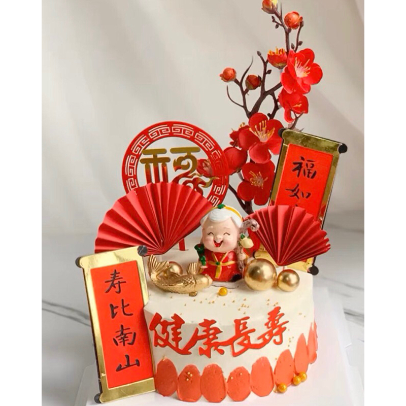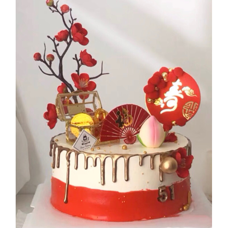 red cherry blossom cake topper