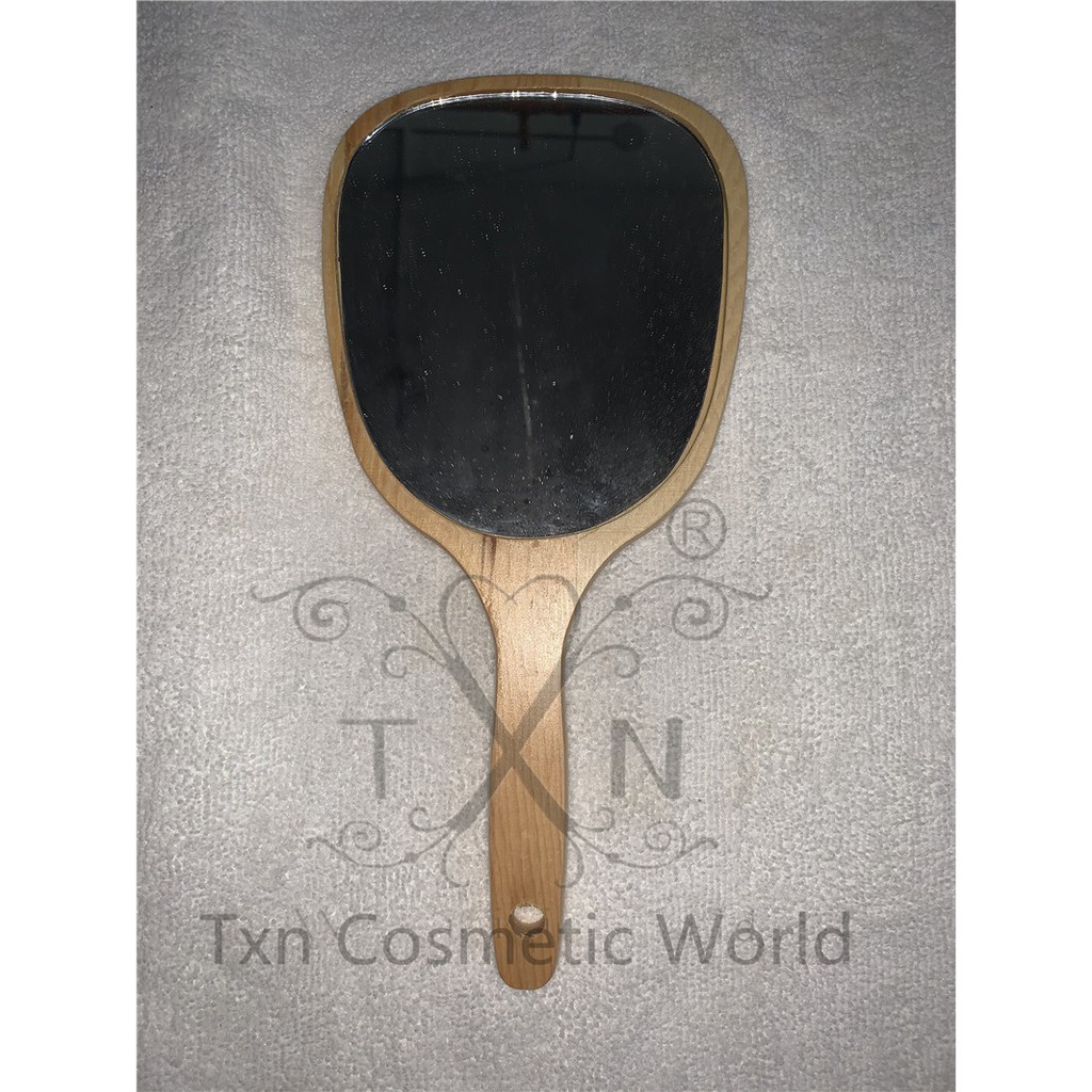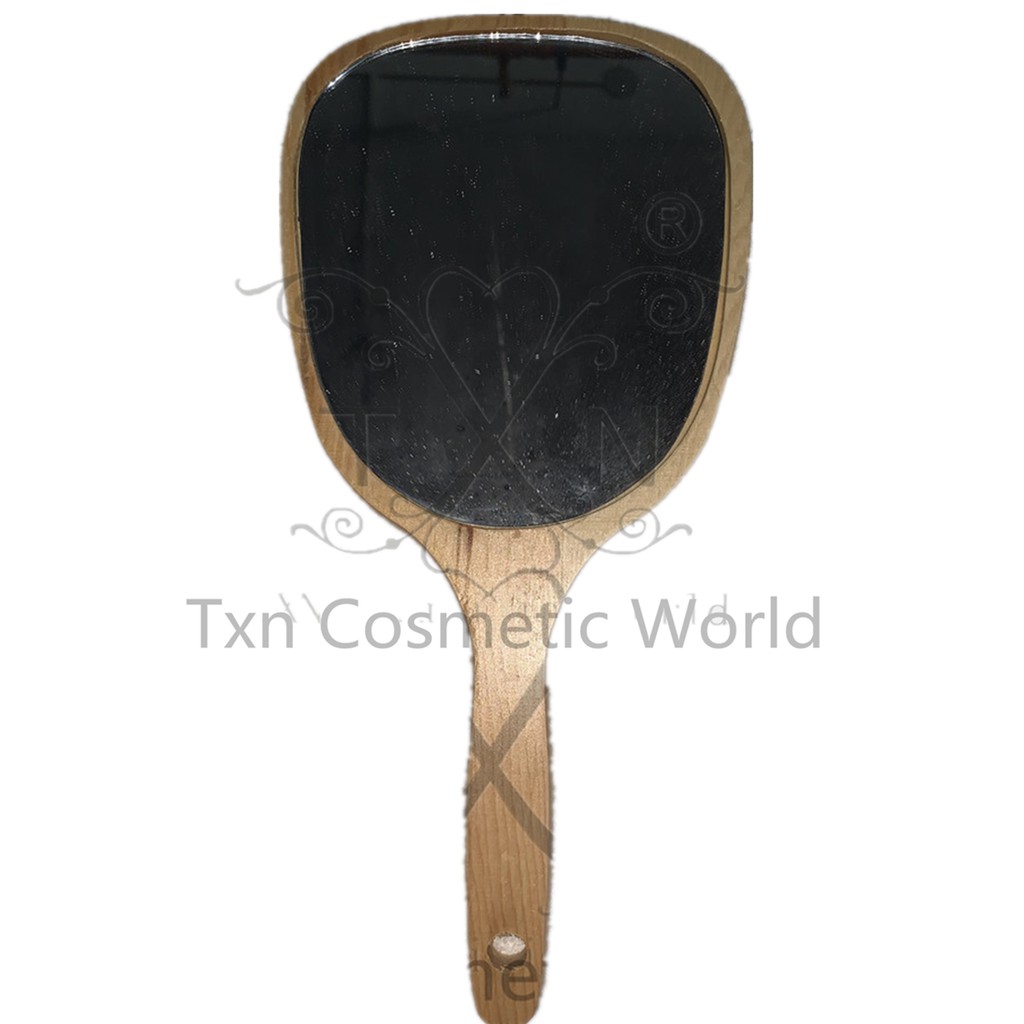salon wooden hand mirror square