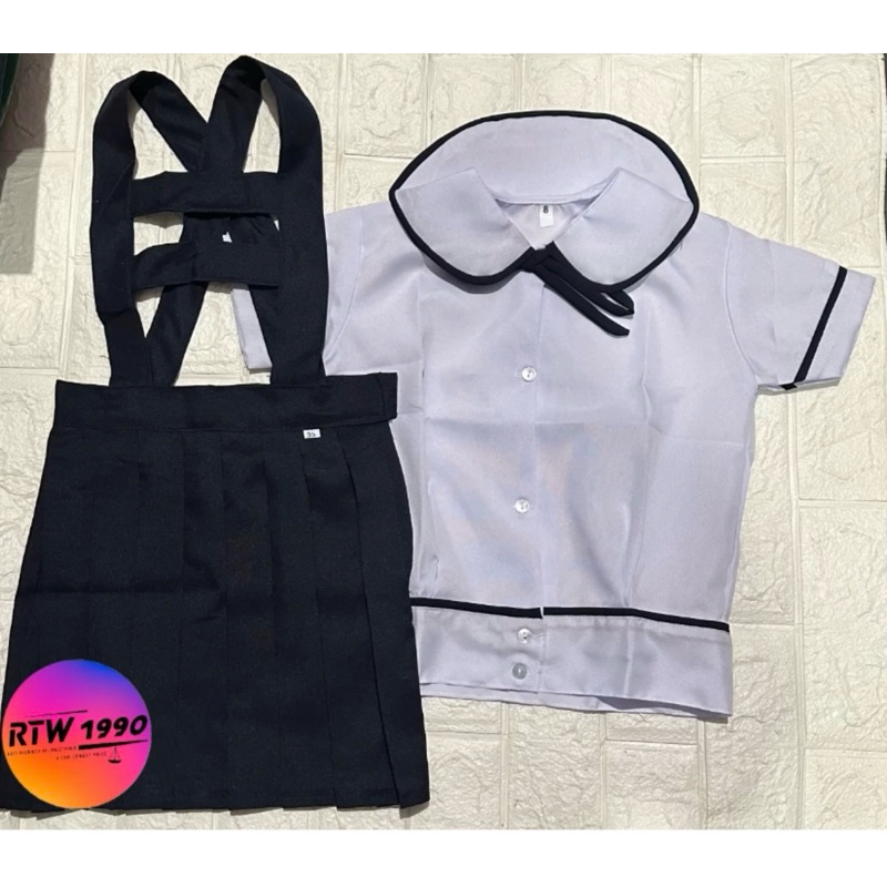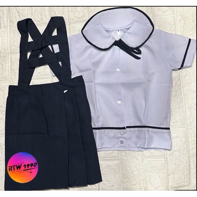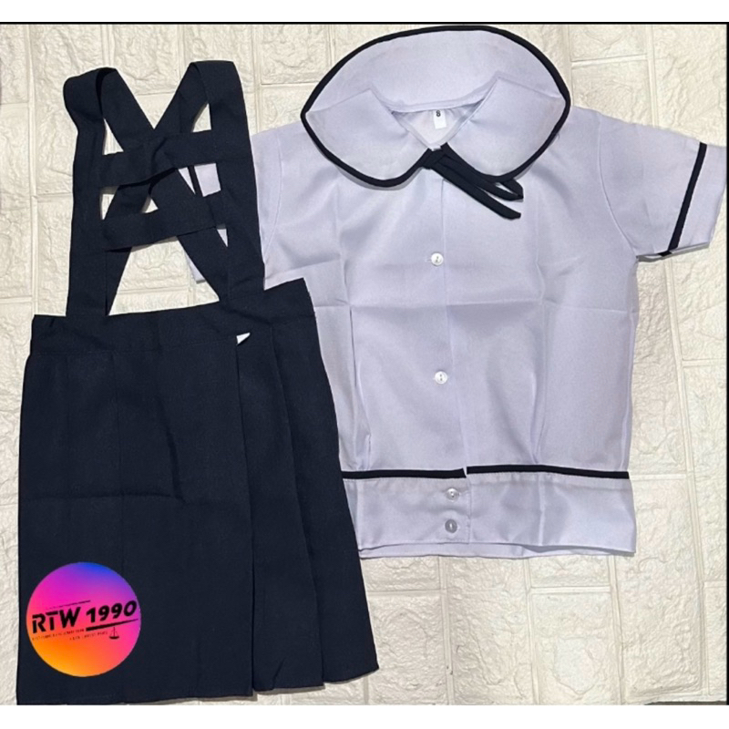 school uniform blouse with piping navyblue & terno skirt with piping blouse