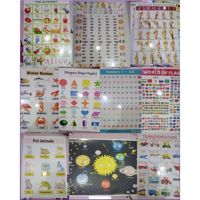 set of 10 kids learning chart | educational materials