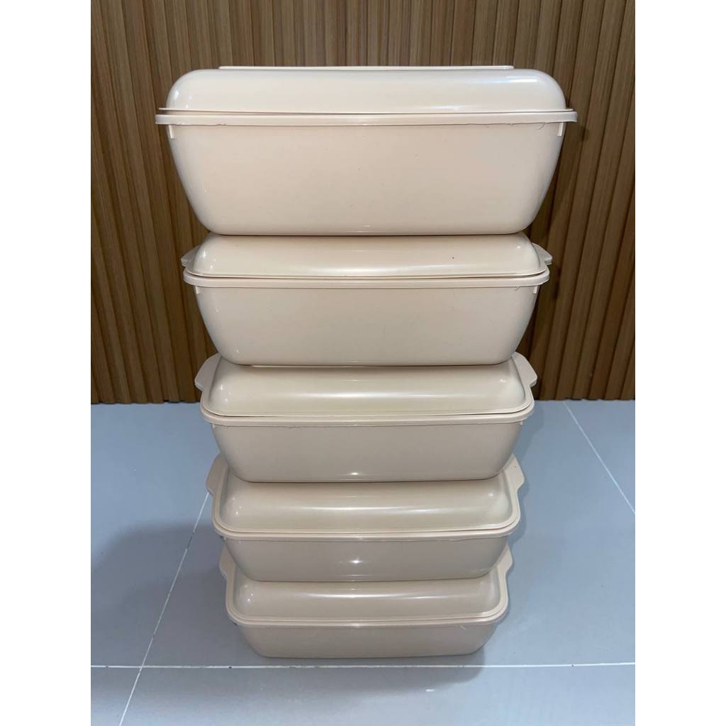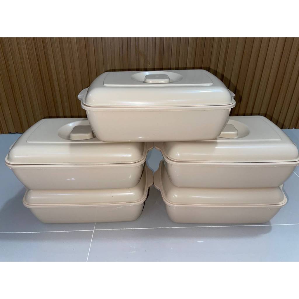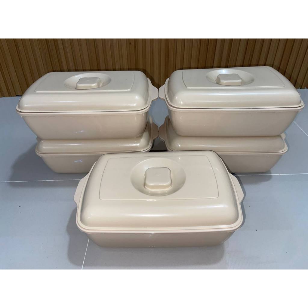set of 5pcs. LARGE & HEAVY DUTY food storage w/ handle & cover - dish container - 28x19x10 cm - 5L