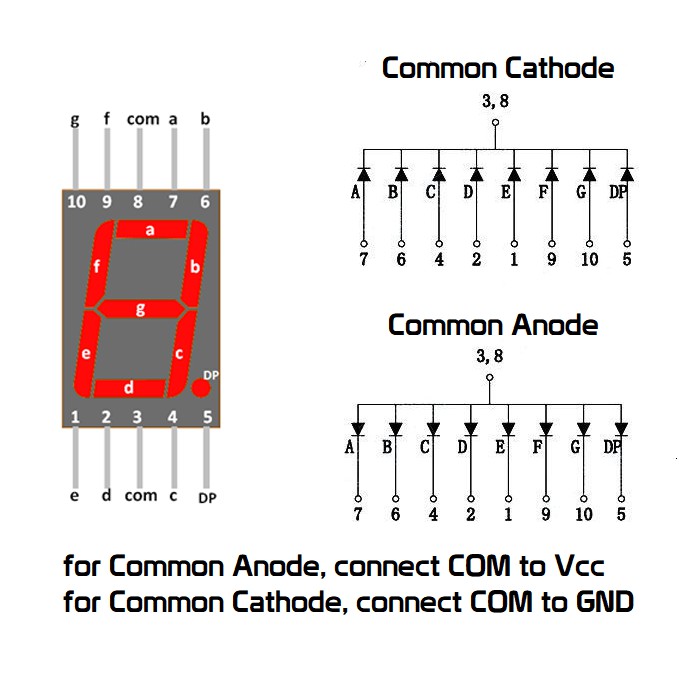 seven segment display 7 segment with DP common anode or common cathode 0.56" CC or CA
