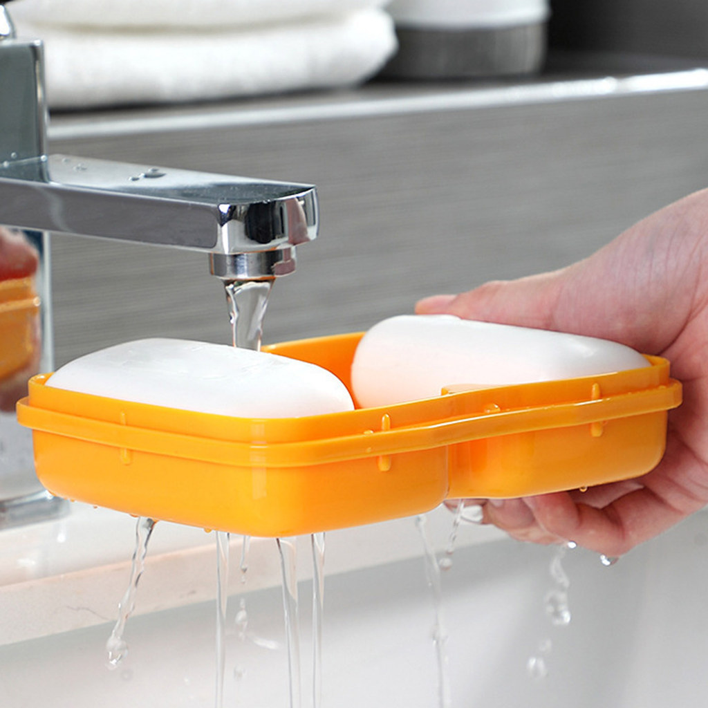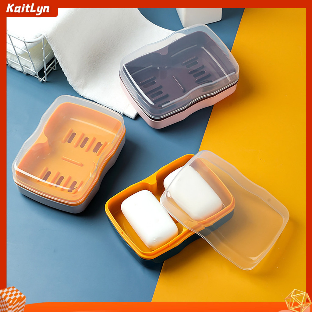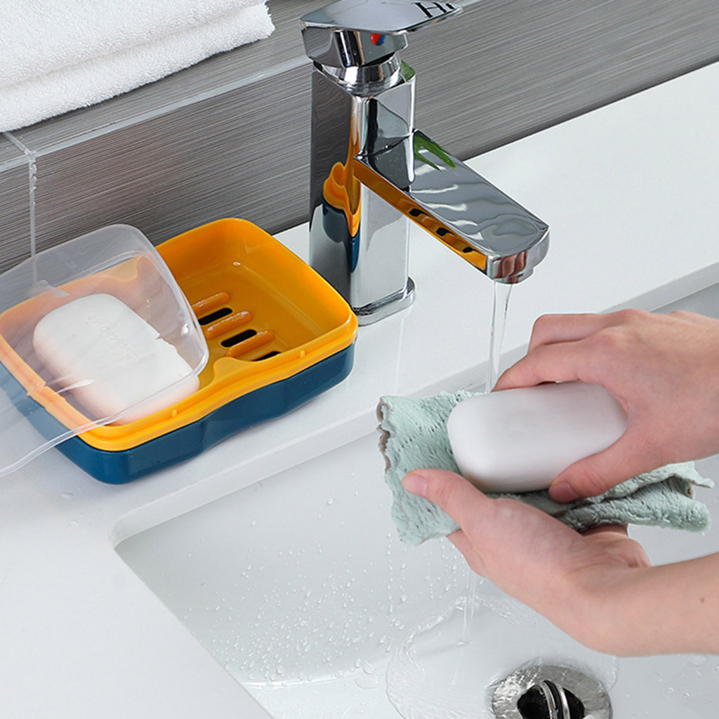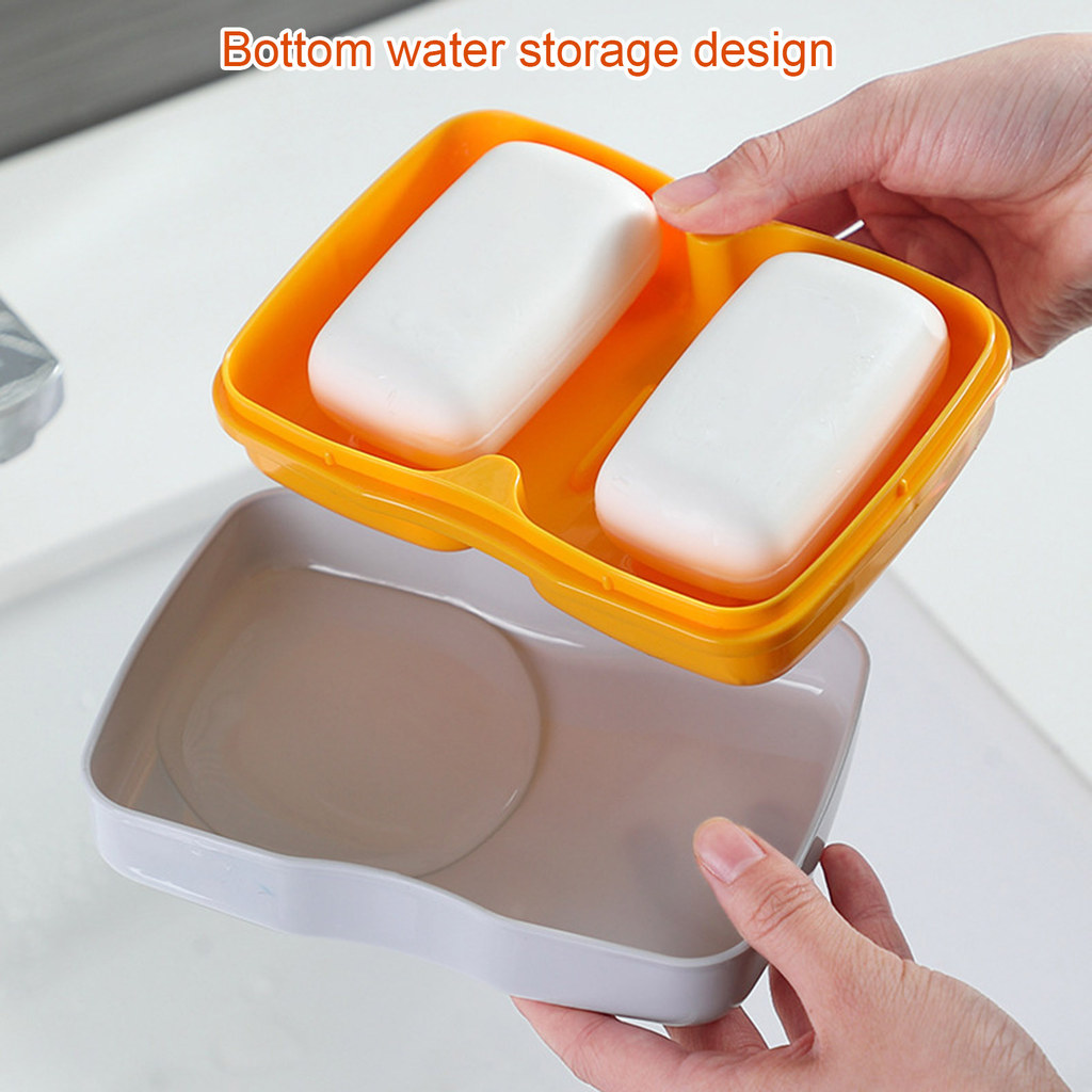 shopeestore| Clear Dust-proof Lid Soap Box Countertop Soap Organizer Modern Dual Compartment Soap Dish with Quick Drain and Dust-proof Lid for Kitchen and Bathroom