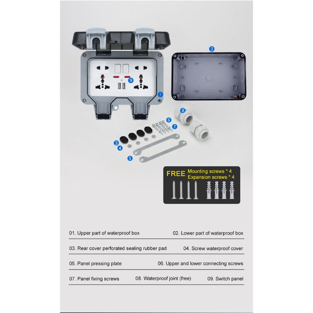 single/double Weatherproof Outdoor Sockets, Waterproof Switched Power Socket IP66, Wall Electri