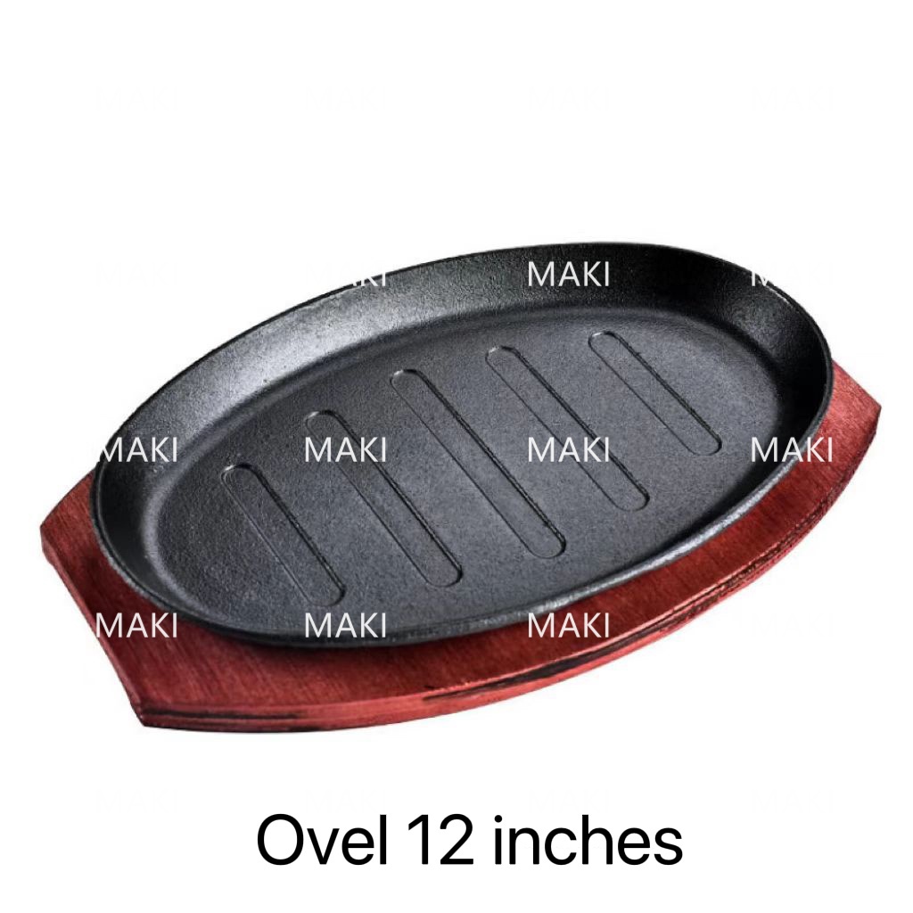 sizzling plate non stick cast iron sizzling plate set oval sizzling plate with wood base and handle