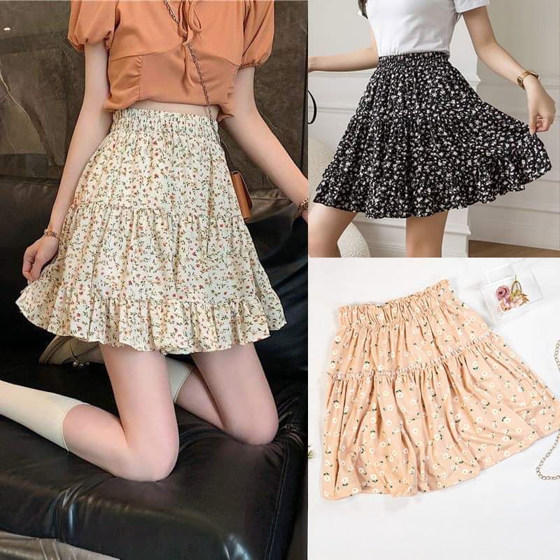 skirt for women high waist floral layered flowy skirts for woman printed mini skirt palda B108