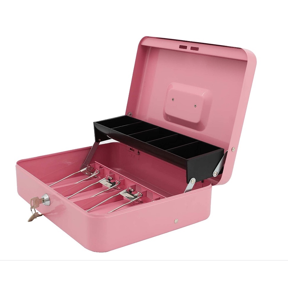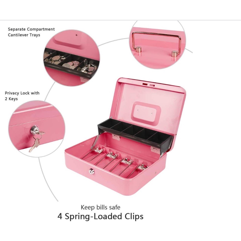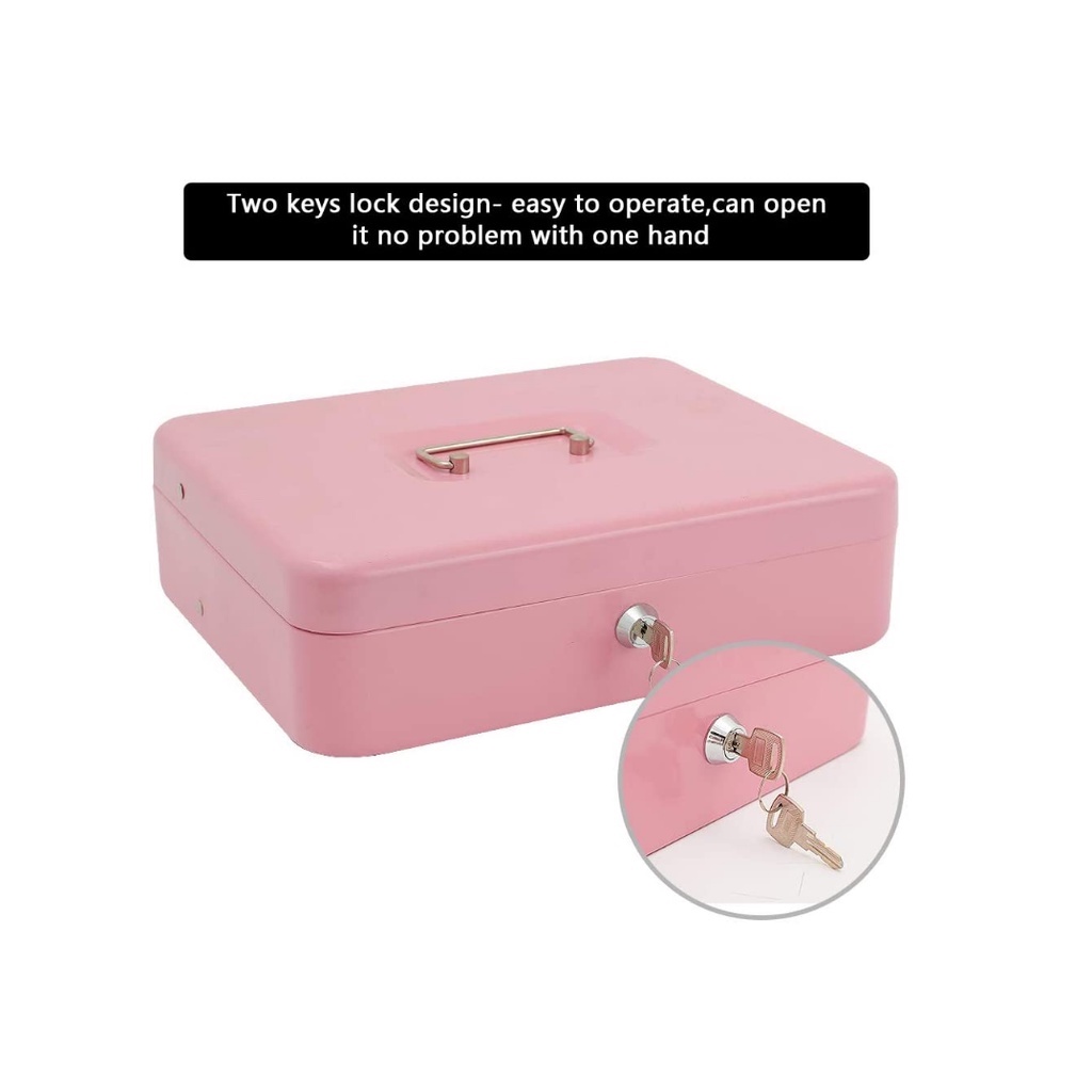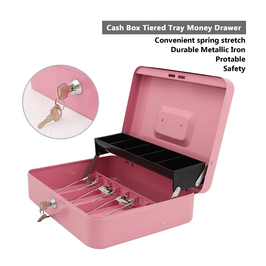 skyshopCash Box Money Drawer Storage Cash Box Key Locking Safe Tiered Tray Cash Drawer Money Cashier