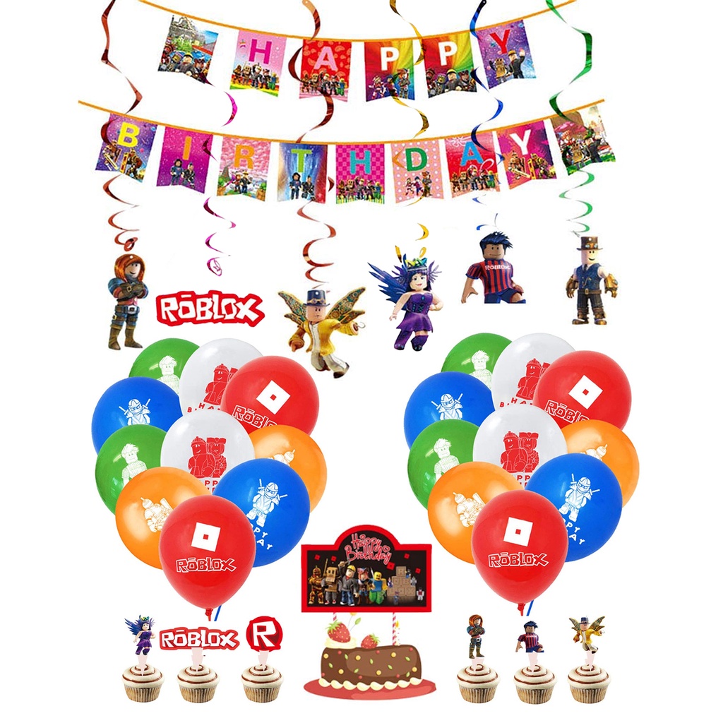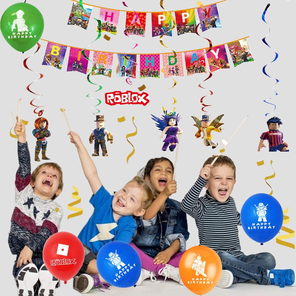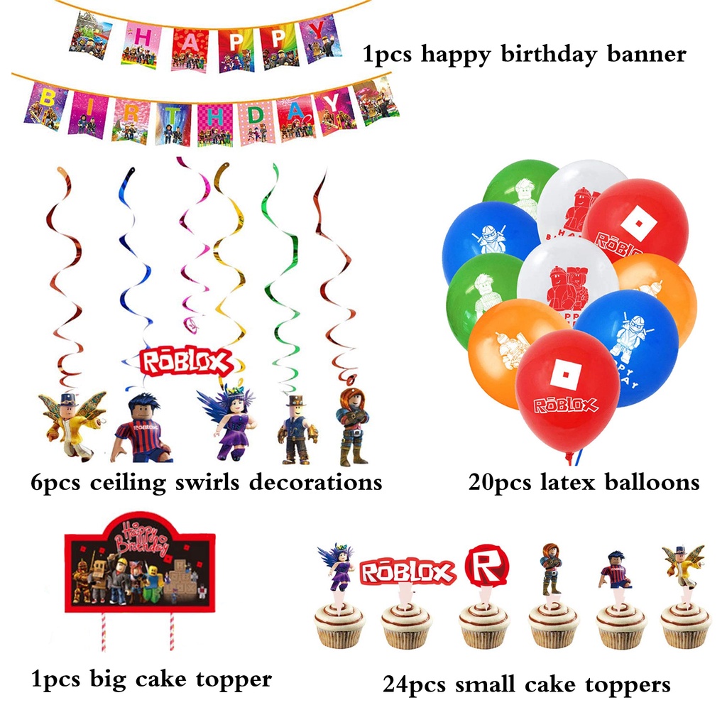 smlhparty Roblox Birthday Decorations Roblox Balloons Banner Cake Topper Hanging Swirl Ceiling Decor