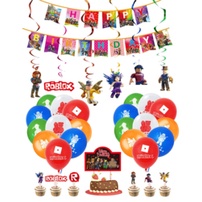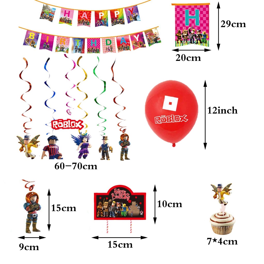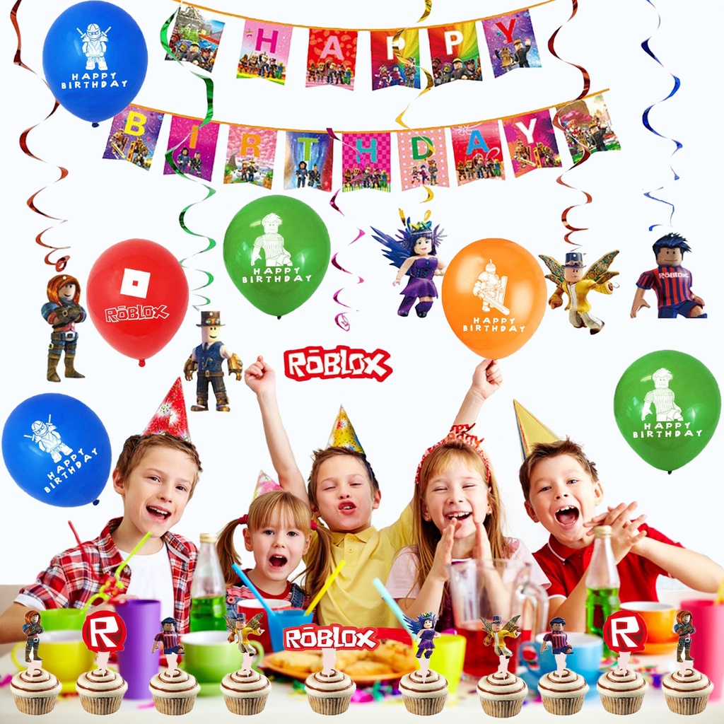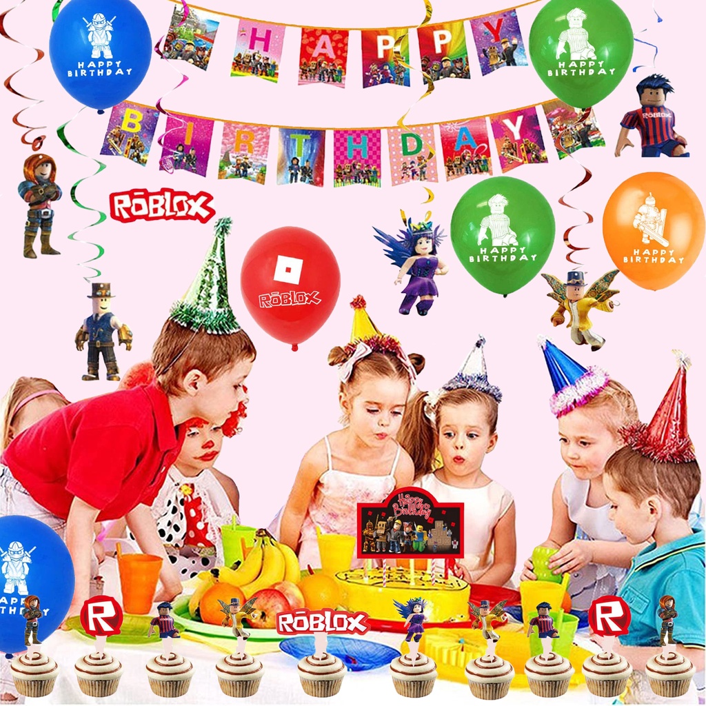 smlhparty Roblox Birthday Decorations Roblox Balloons Banner Cake Topper Hanging Swirl Ceiling Decor