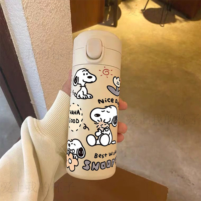 snoopy Vacuum Cup Anti-Slip Drop-Resistant High-Efficiency Insulation One Piece Open Lid Design Drinking Water Cold Insulation Water Bottle