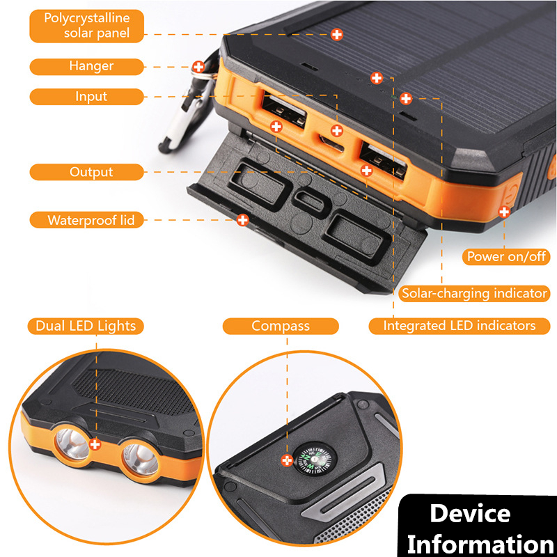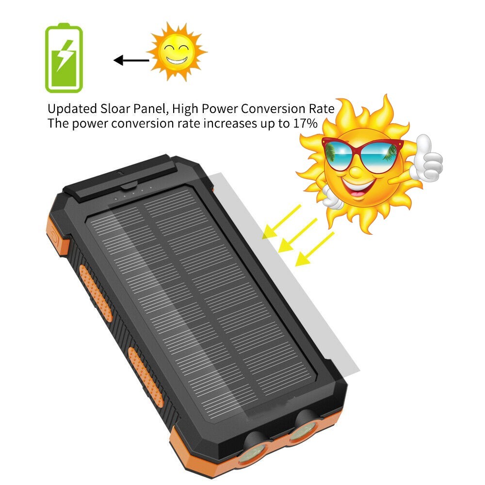 solar power bank 100000mah powerbank original waterproof solar charger 2 USB battery portable for iPhone