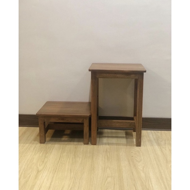 solid KD mahogany wood square stool with brown varnish. can also be used as side table/ dining stool