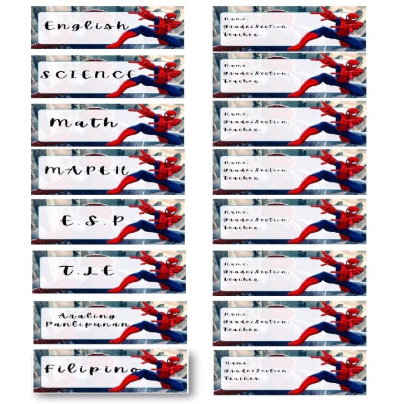 spider man subject and name sticker set (no customize)