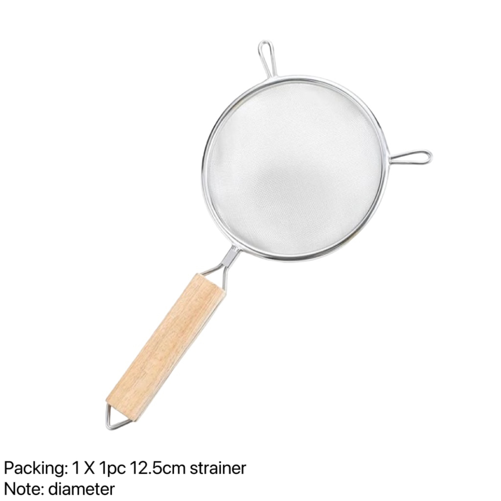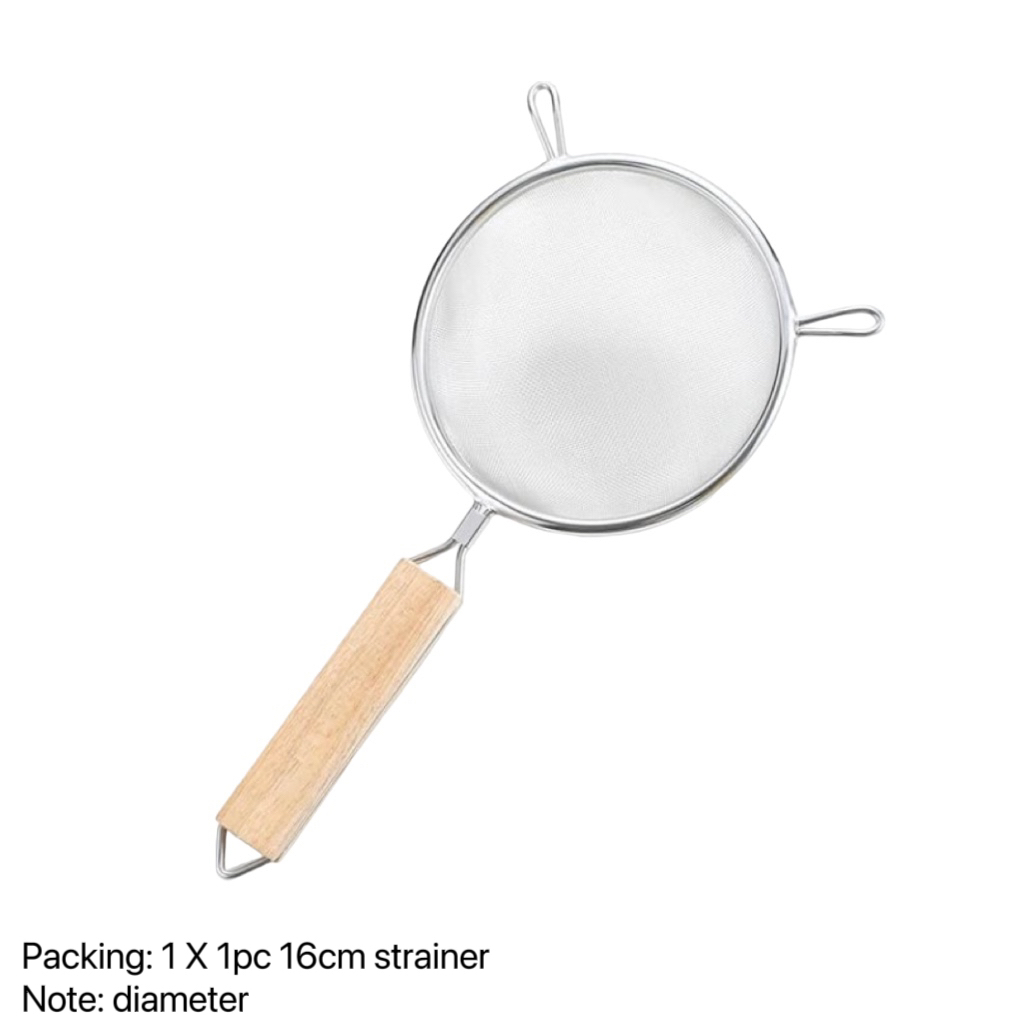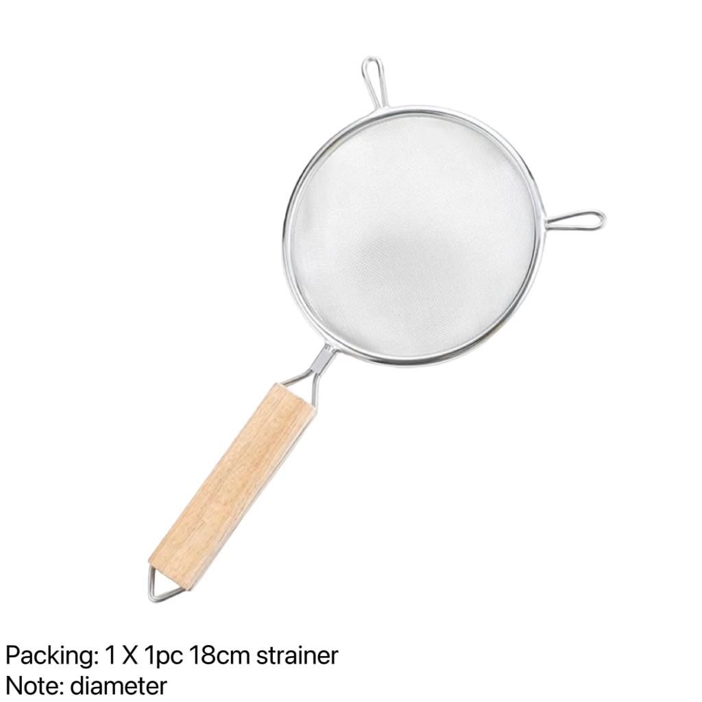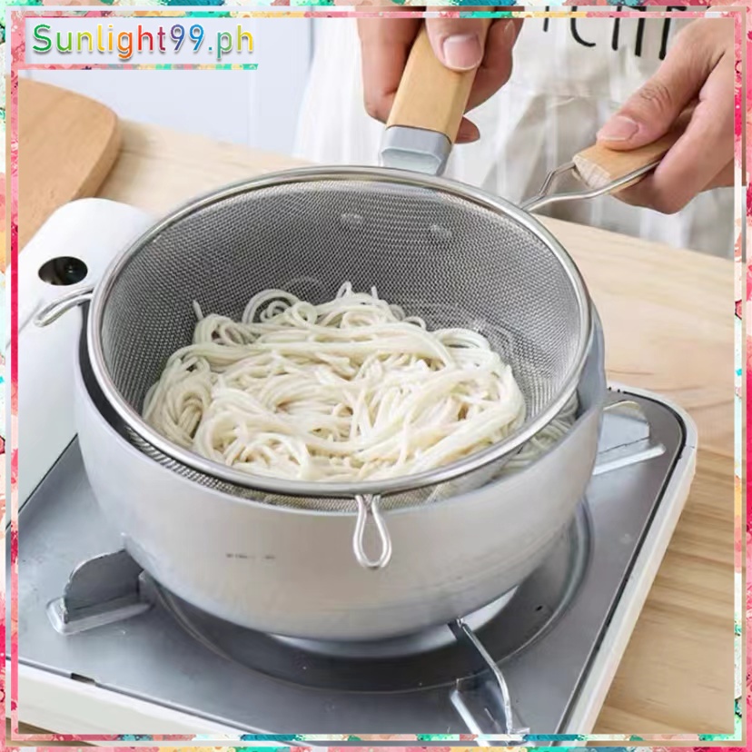 stainless steel double mesh strainer sifter sieve for kitchen food drainer with wooden handle
