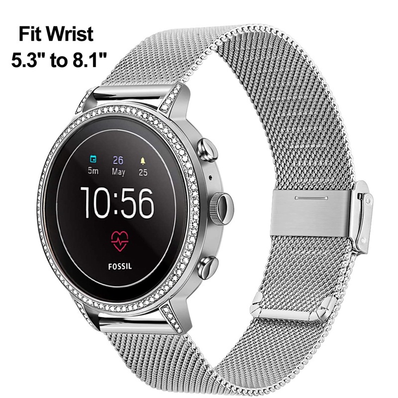 stainless steel mesh Watch Band for Men Women, thick Metal mesh strap, adjustable length-silver, black and rose gold tones 20 mm, 22 mm