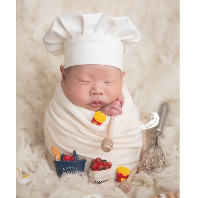 stay Baby Photography Props Little Chef Hat White Stretch Wrap Little Cook Creative Props Newborn Photography Accessories