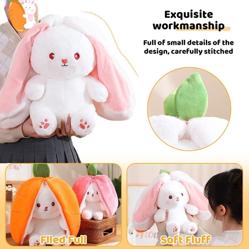 strawberry rabbit plush toy bunny stuffed toy rabbit plushie 2 in 1 plushie stuffed toy