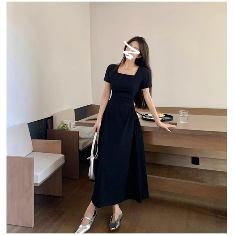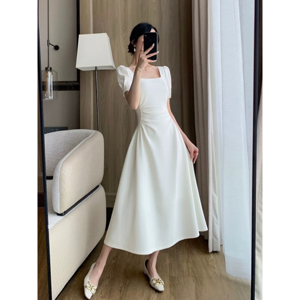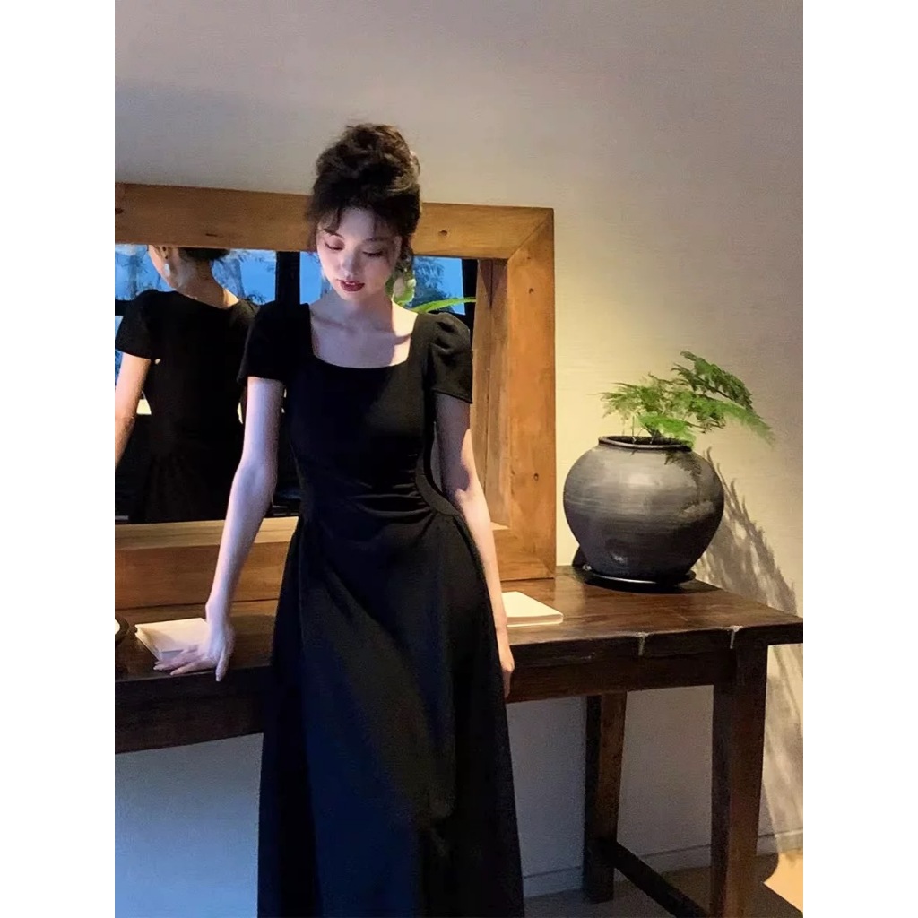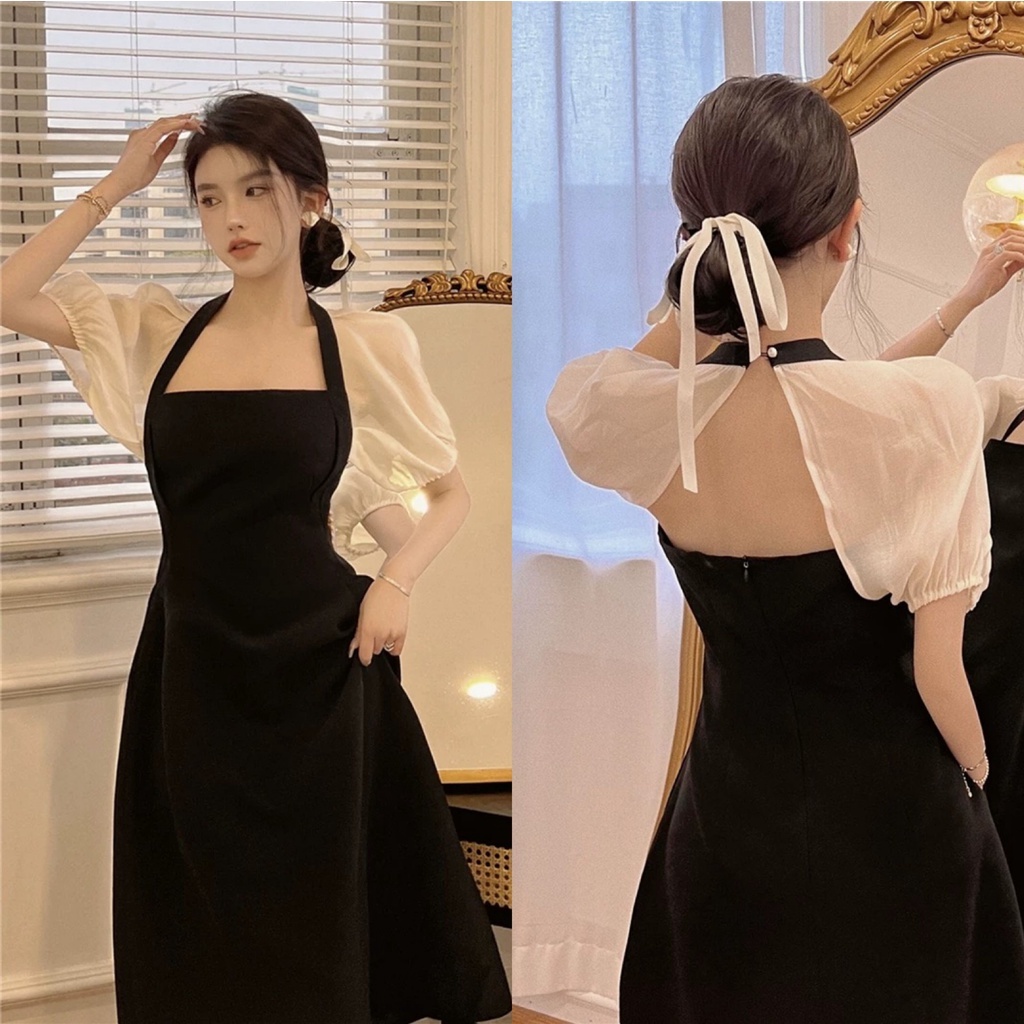 new korean black puffed sleeves long formal dress for woman elegant christmas party dress backless s