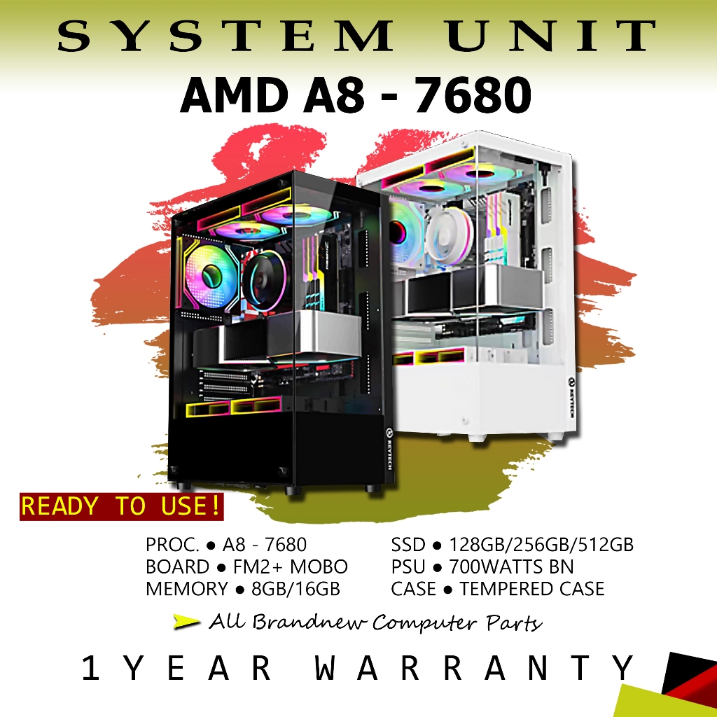 System Unit AMD A6/A8 8gb Ram / 128gb Ssd / Glass Case With Psu
