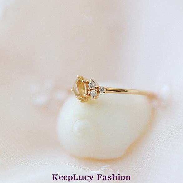 tala by kyla Original natural small particles of citrine 925 silver gold-plated ring is lucky~