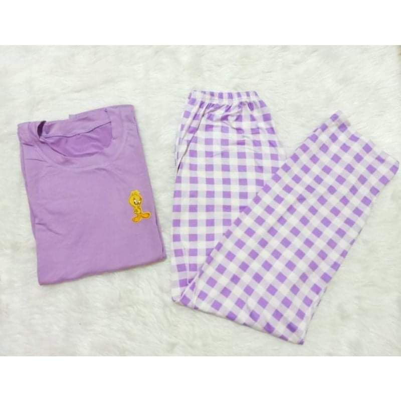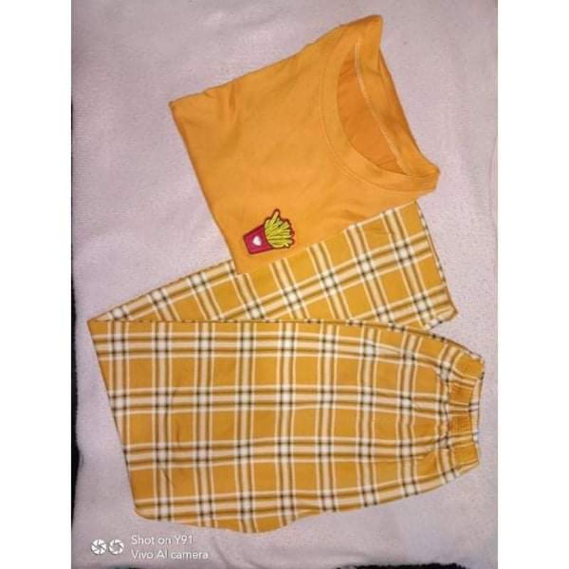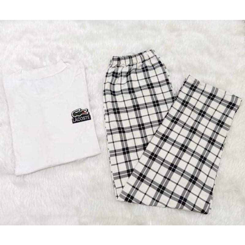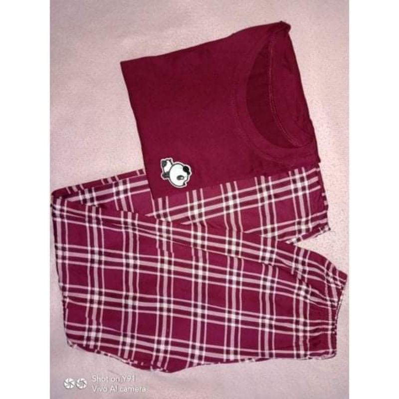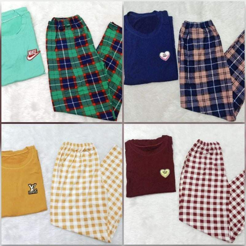 TERNO PAJAMA PATCHES DESIGN ON PLAIN TOP WITH PLAID PAJAMA FOR WOMEN &MEN UNISEX(plain&checkered)