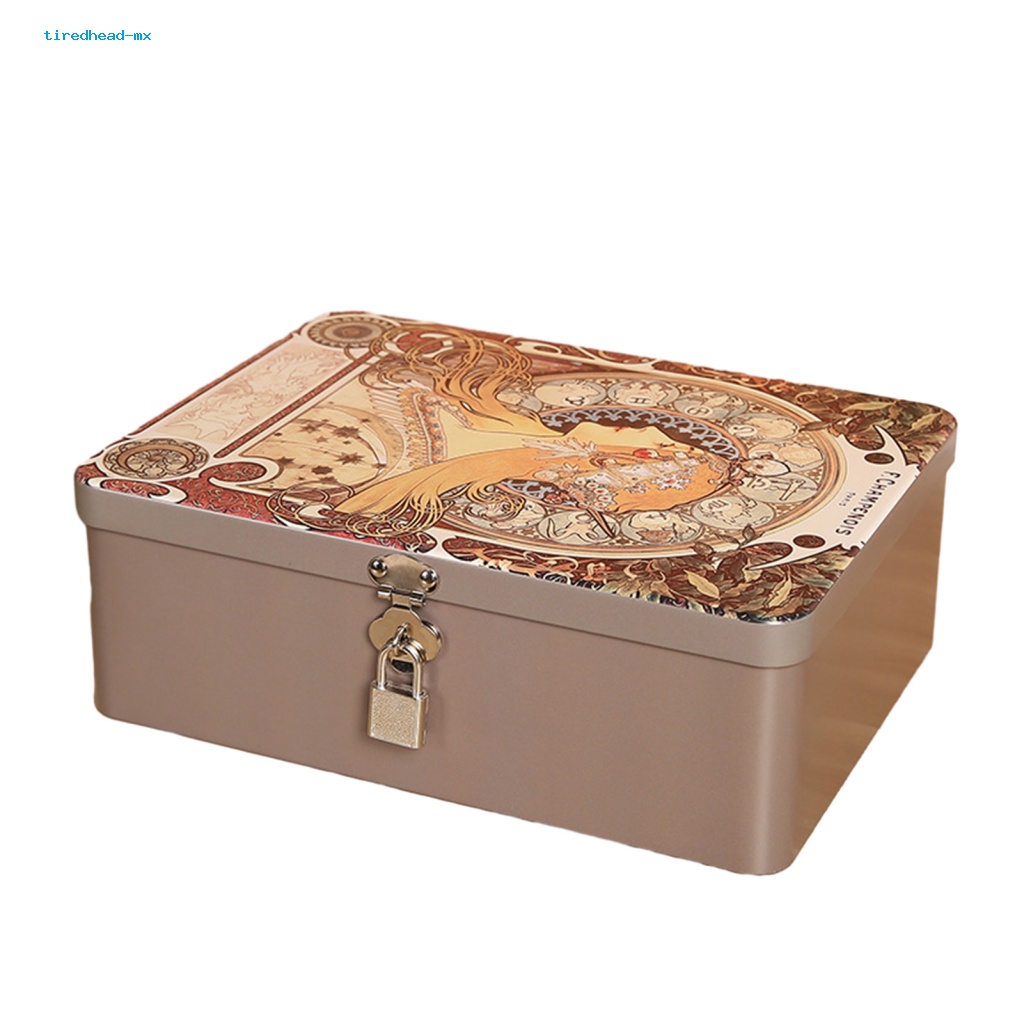 tiredhead Retro-themed Storage Box with Lock and Key Vintage Style Lockable Tin Box for Jewelry Storage Convenient Desktop Organizer for Home Southeast Asian Buyers' Favorite