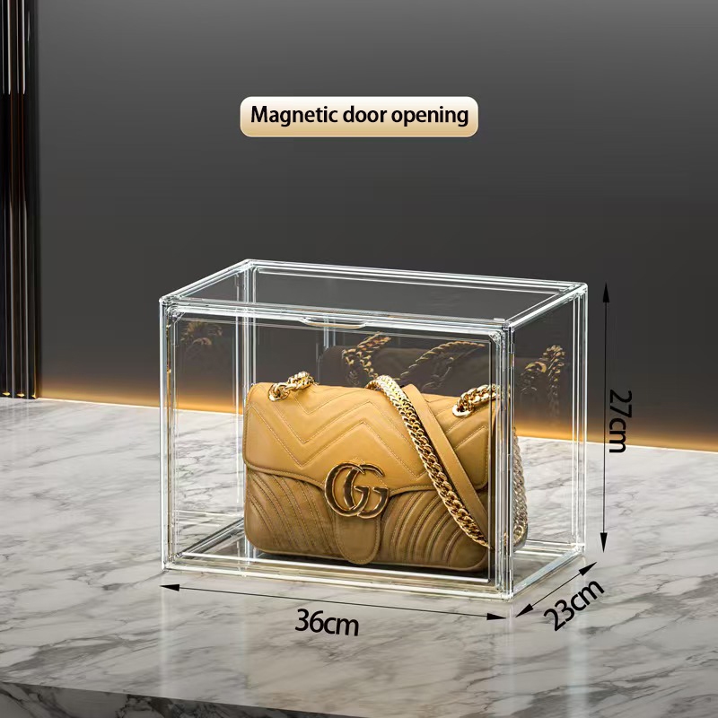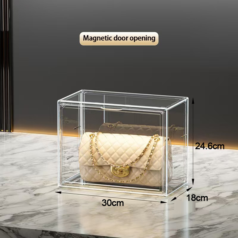 transparent Acrylic Bag Magnetic Door stackable Toy Lady Bag organizer storge box display box