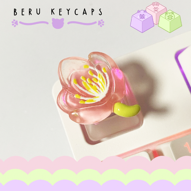 transparent pink sakura cherry blossom flower keycaps for mechanical and membrane keyboard