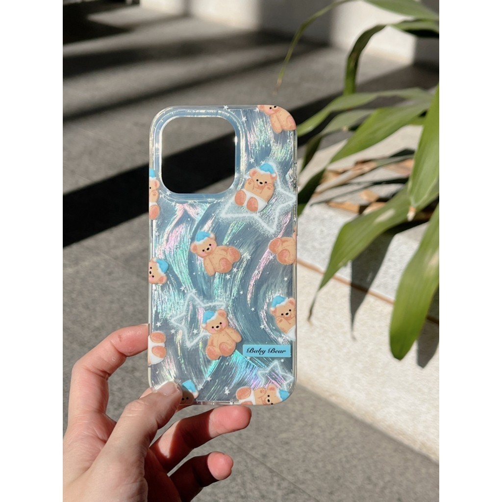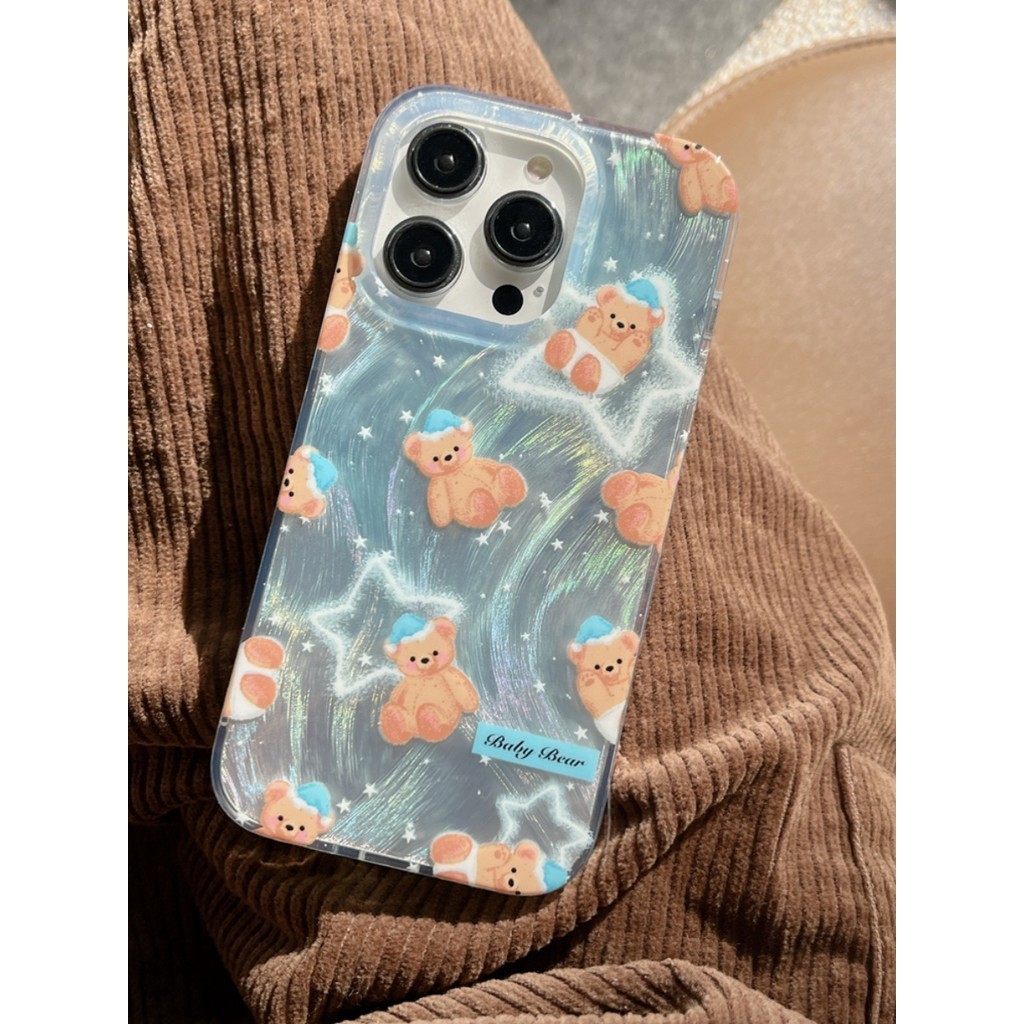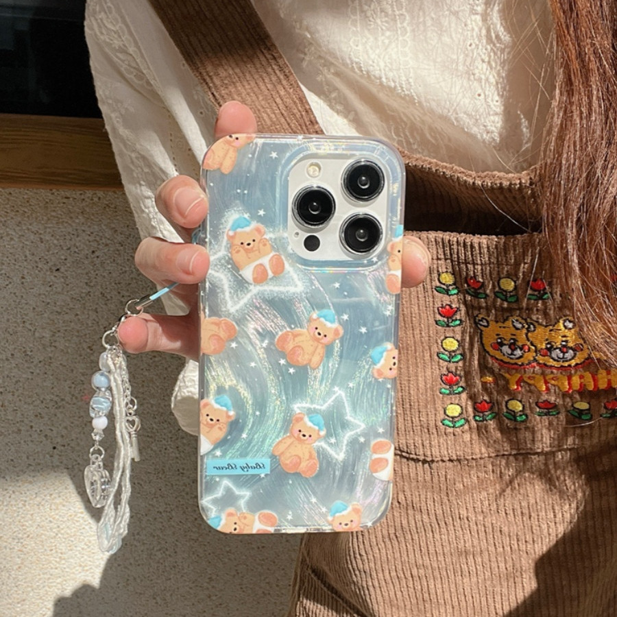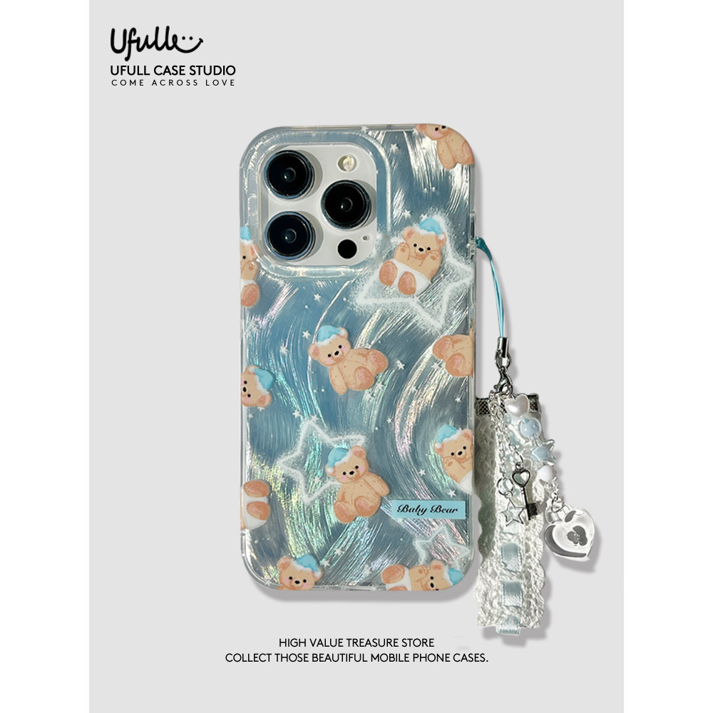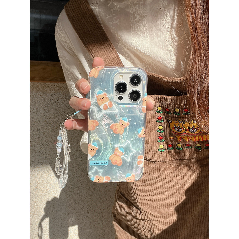 ufull is suitable for Korean style cartoon star bear iPhone14promax fpr iphone 15 phone case 12 pro bracelet max electroplating iphone13 girl model 11 feather yarn plus anti-drop